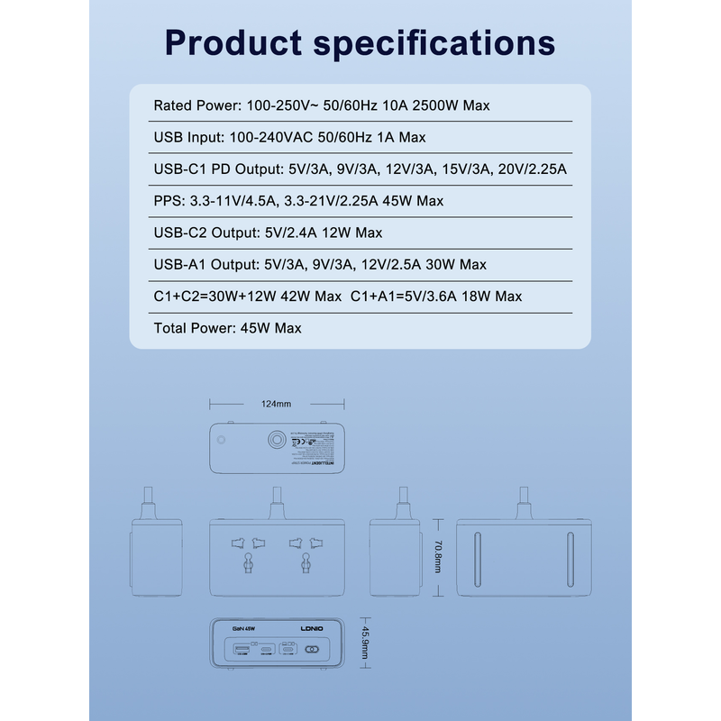 USB-C1: 45W Laptop Fast Charge(20V12.25A)