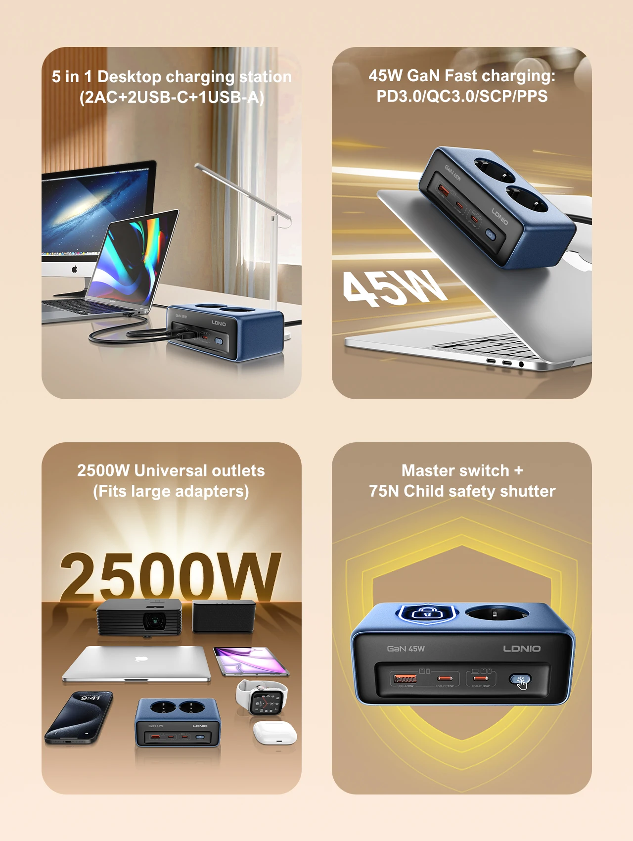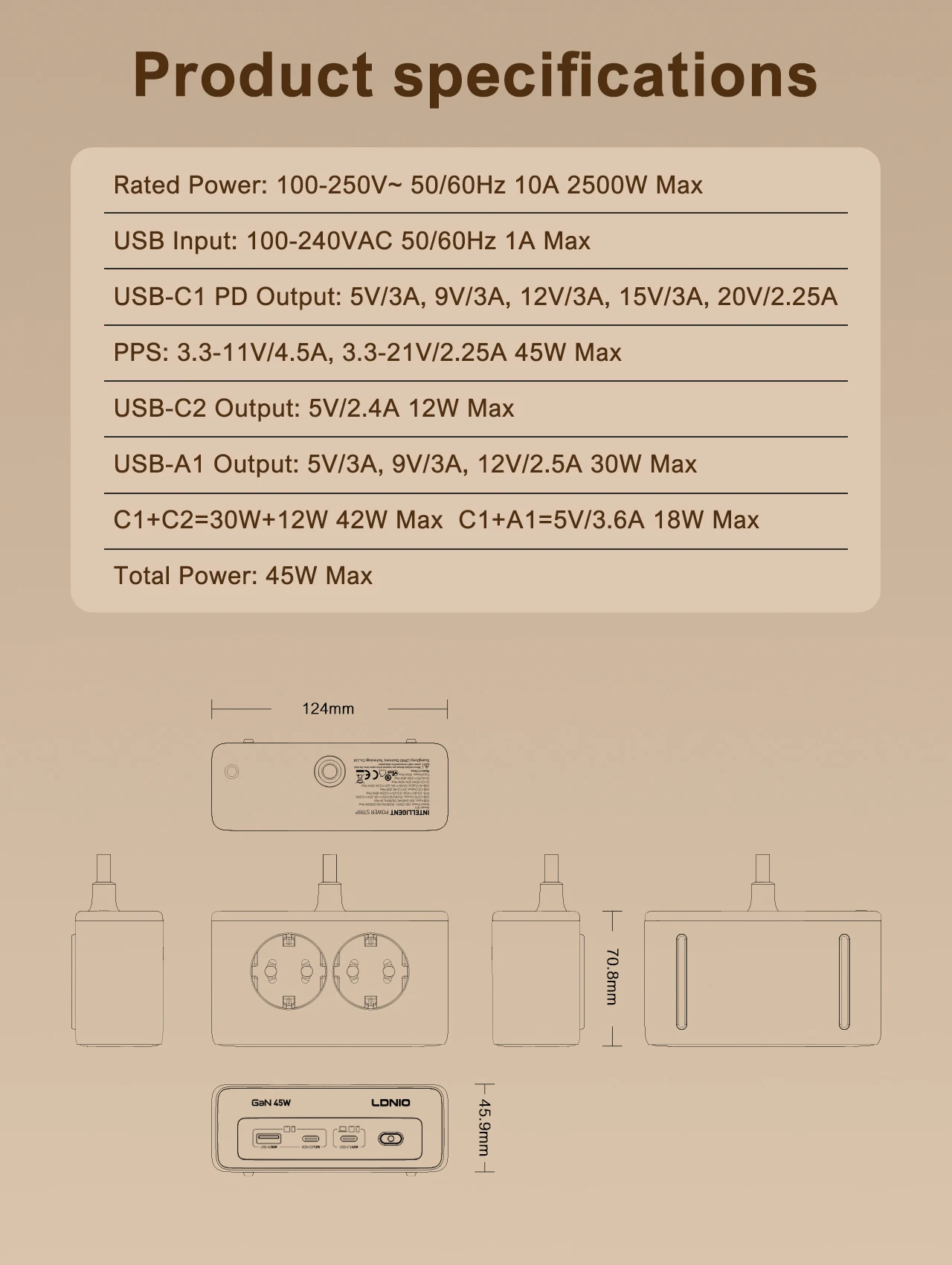 USB-C1: 45W Laptop Fast Charge(20V12.25A)