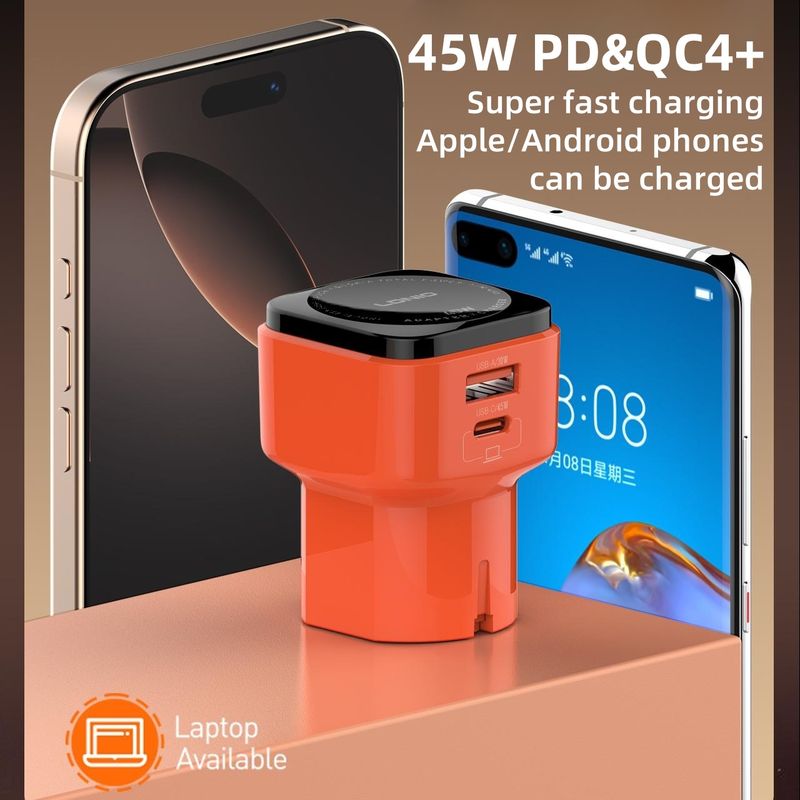 1.GaN 45W Super fast charging: Supports PD/QC4+/QC3.0/PPS fast charge protocol, can quickly charge mobile phones, tablets,laptops, and intelligently match the best current.