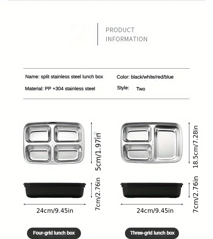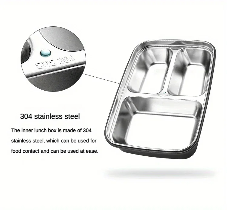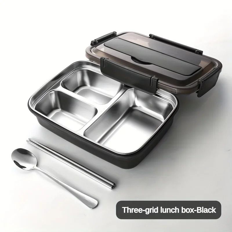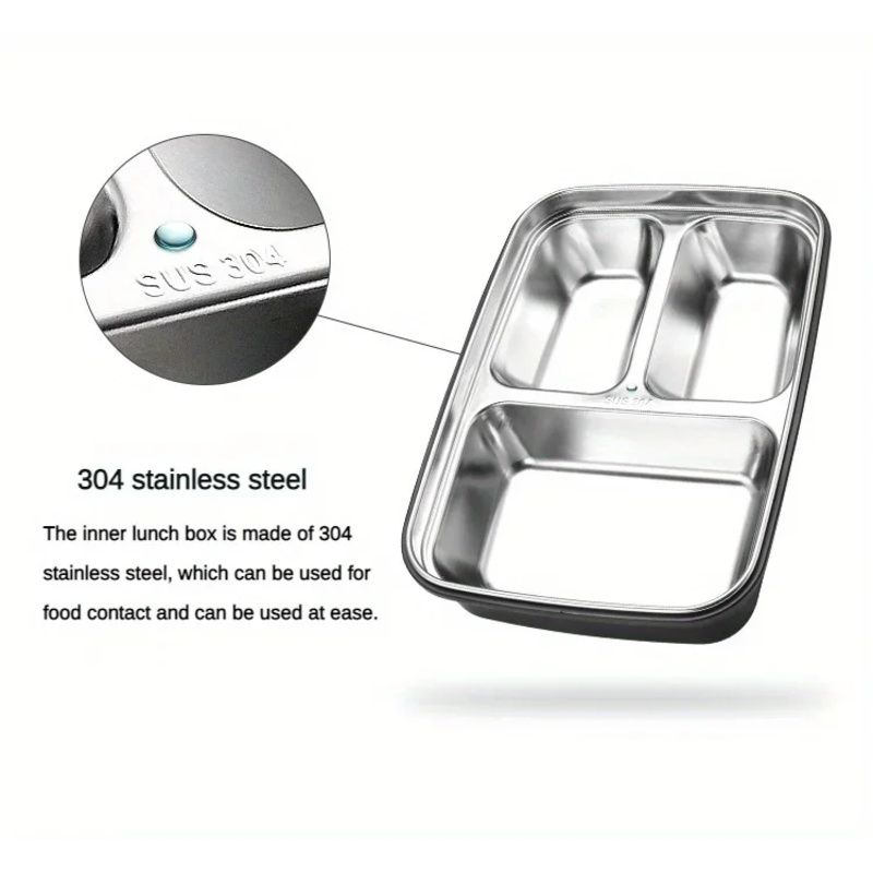 Leak-Proof Stainless Steel Lunch Box With 3/4 Compartments - Durable, Easy-Clean Bento Container For Students & Office Workers