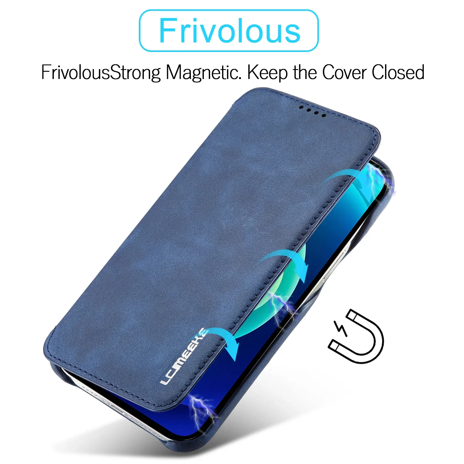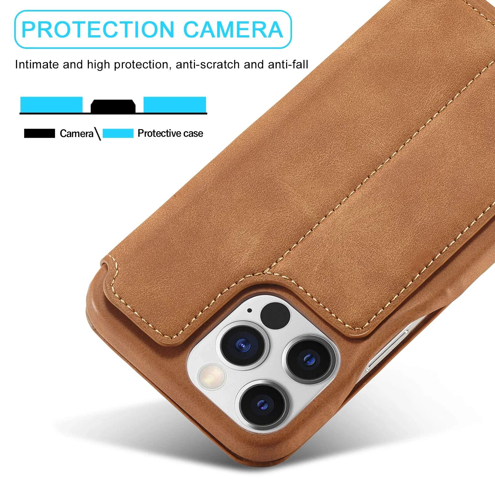 Leather Flip Wallet Phone Cover For iPhone 17 16 Pro Max Air 14 15 13 12 Mini 11 Pro XS Max XR 8 7 Plus SE Card Slots Book Bag