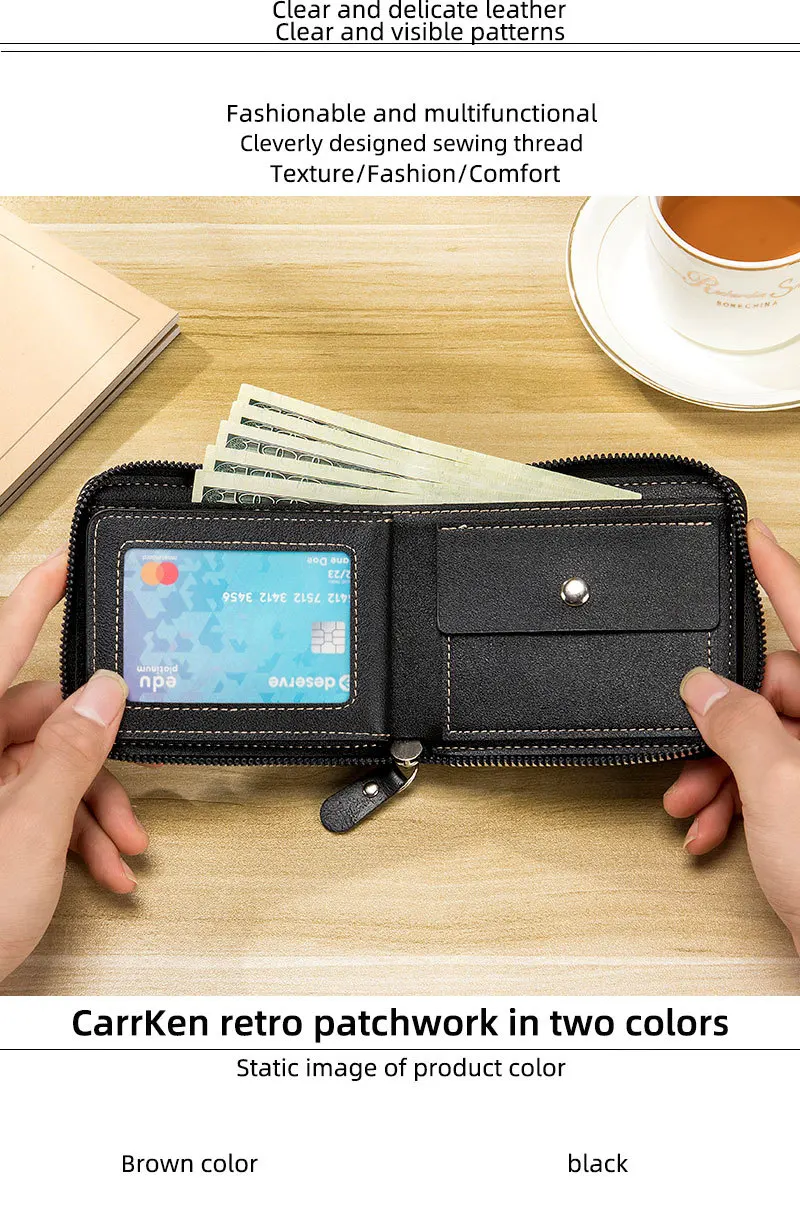 Leather Men's Wallet Luxury Mens Purse Male Zipper Card Holders with Coin Pocket Rfid Wallets Gifts for Men Money Bag