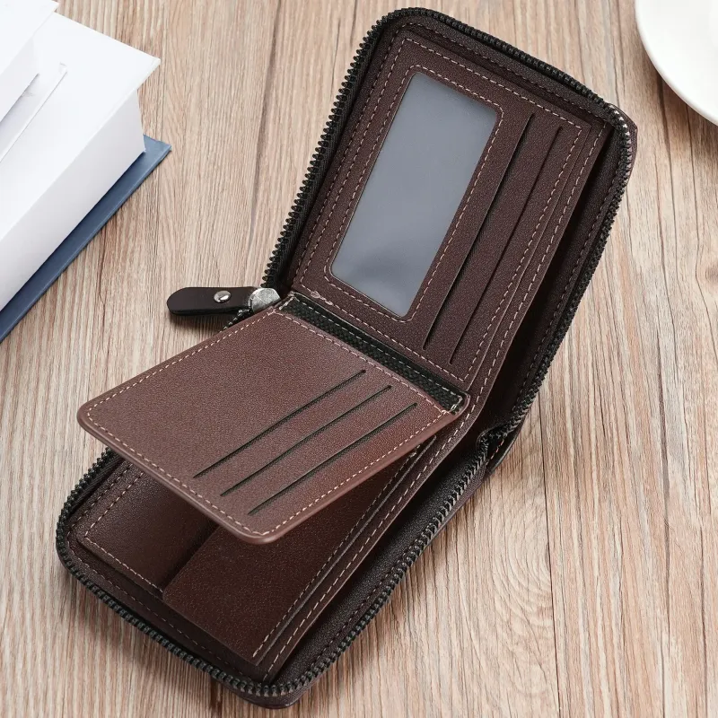 Leather Men's Wallet Luxury Mens Purse Male Zipper Card Holders with Coin Pocket Rfid Wallets Gifts for Men Money Bag