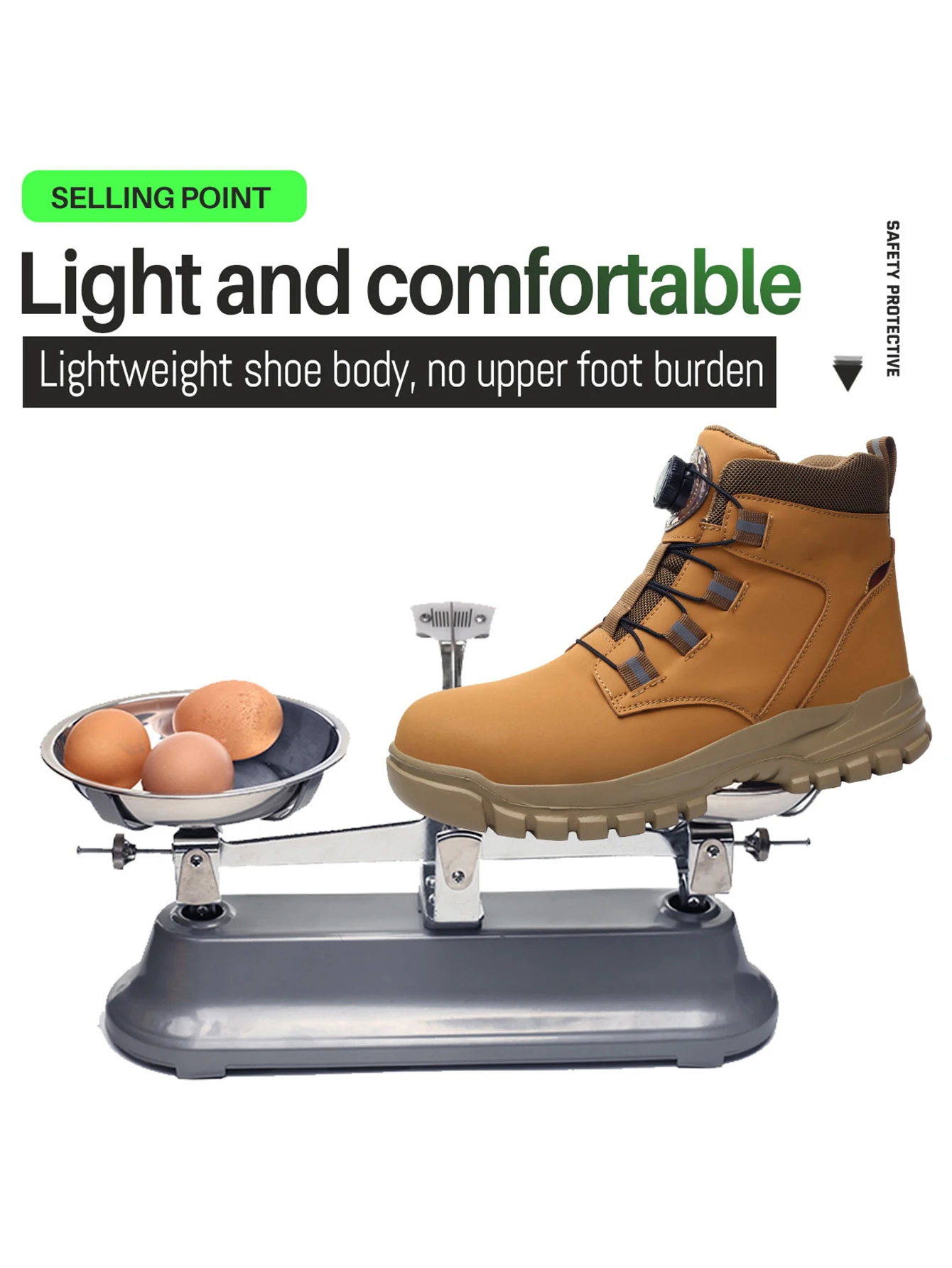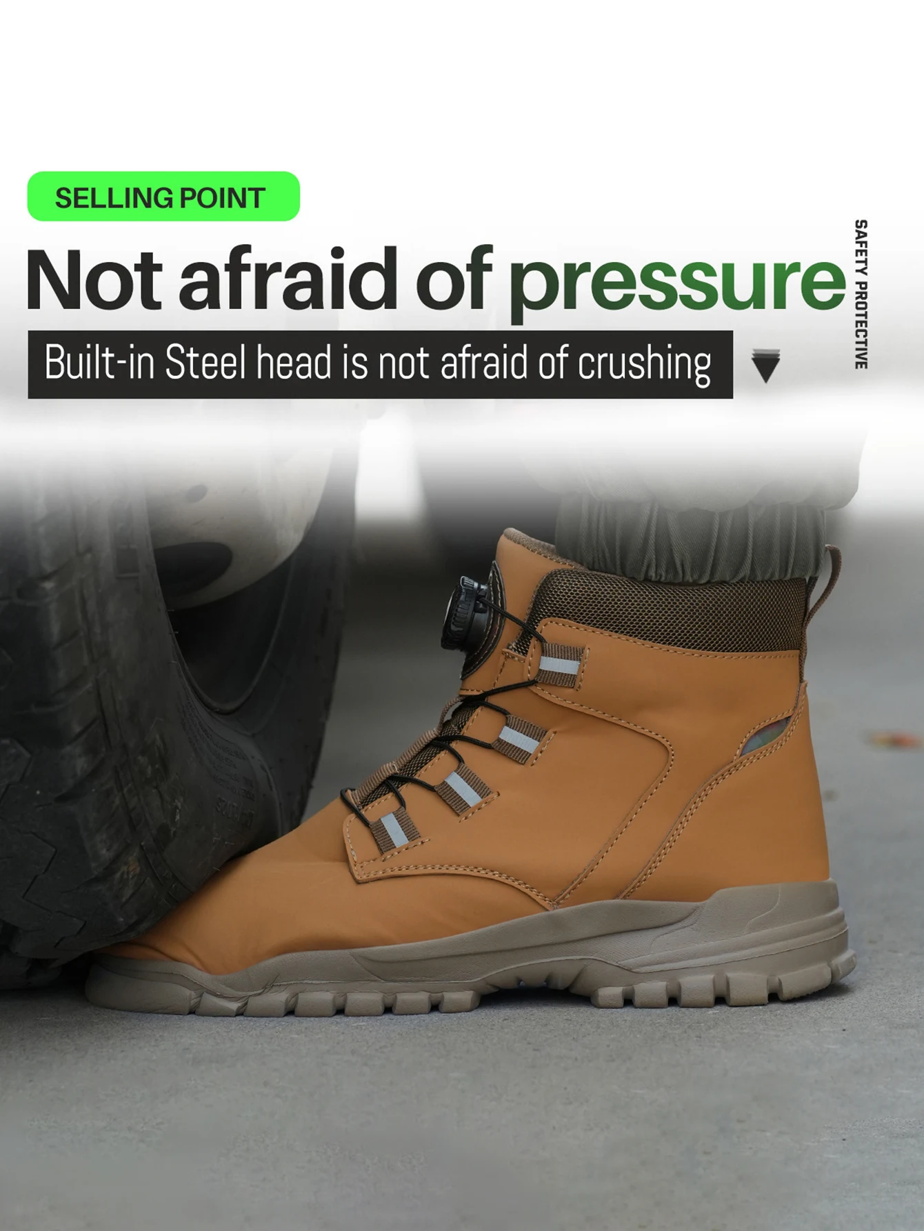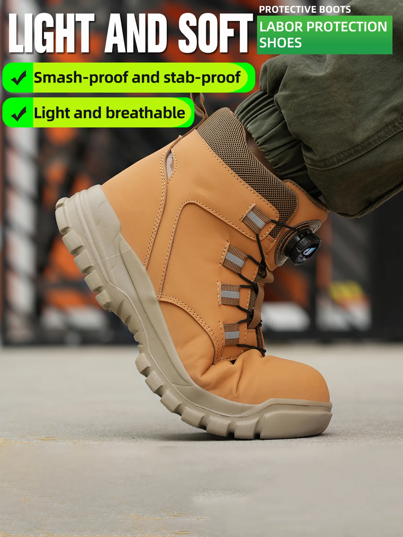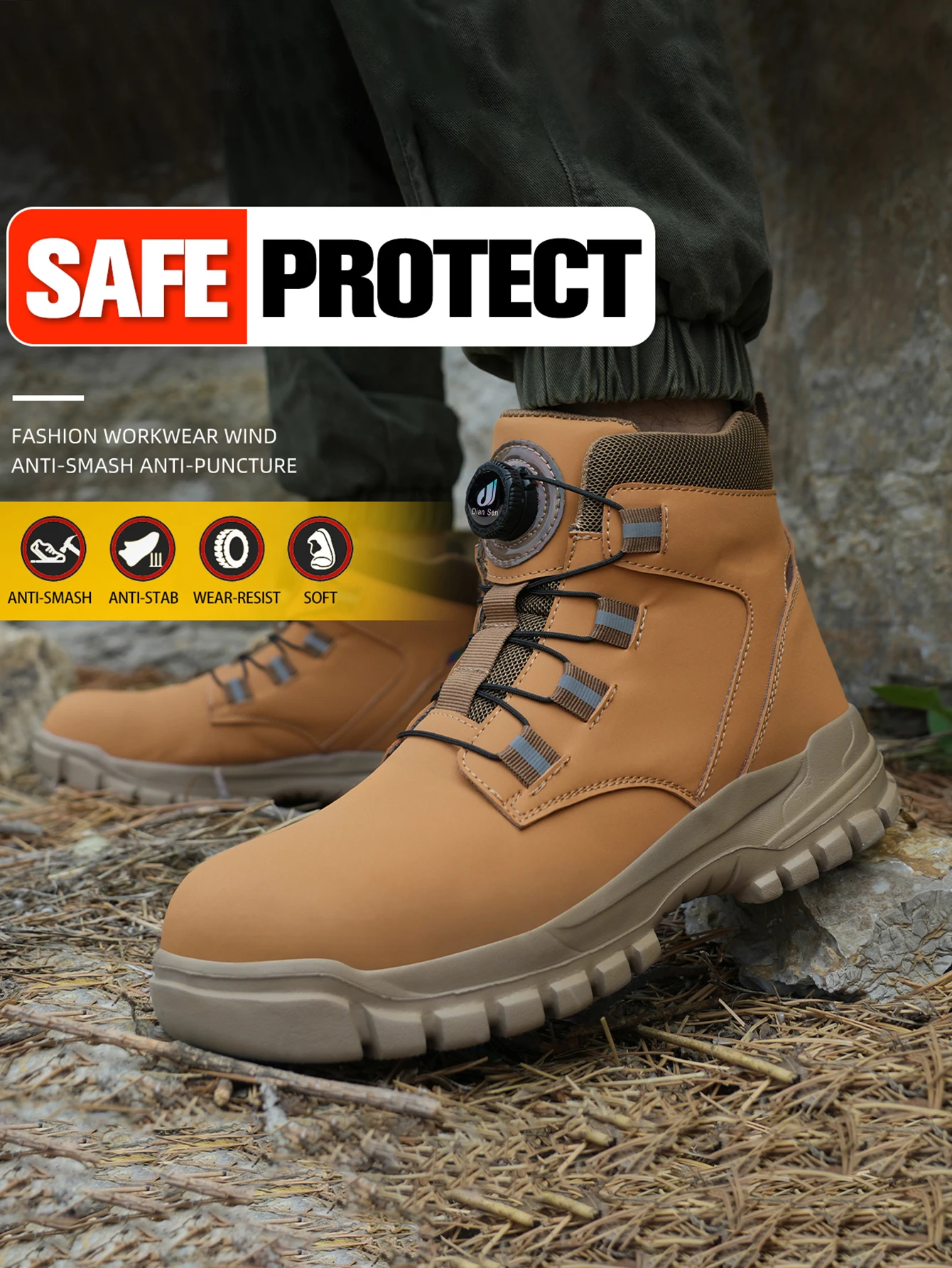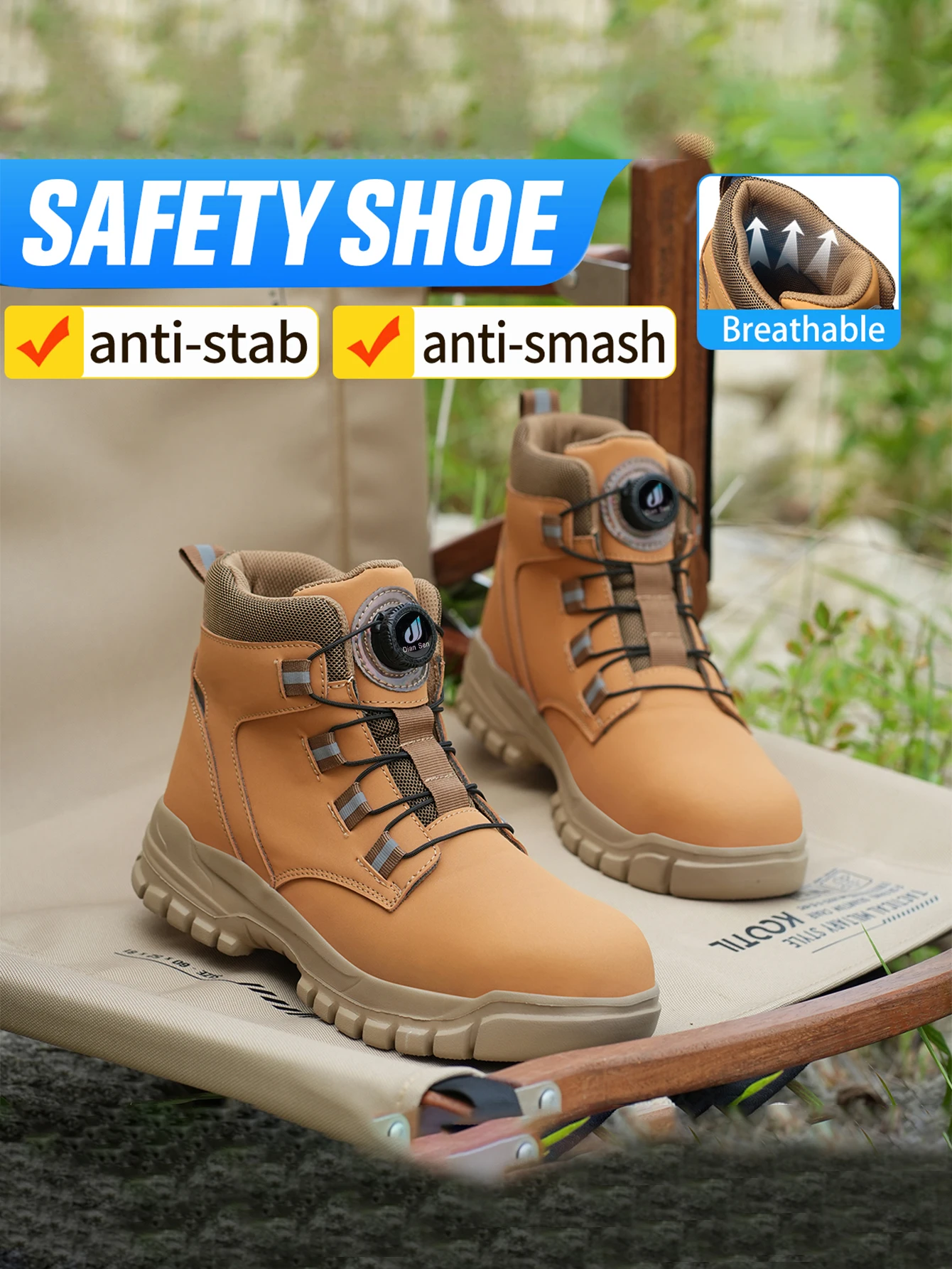 Leather Non Slip Work Boots for Men Rotating Button Safety Shoes Steel Toe Sneaker Male Puncture Proof Protective Boots