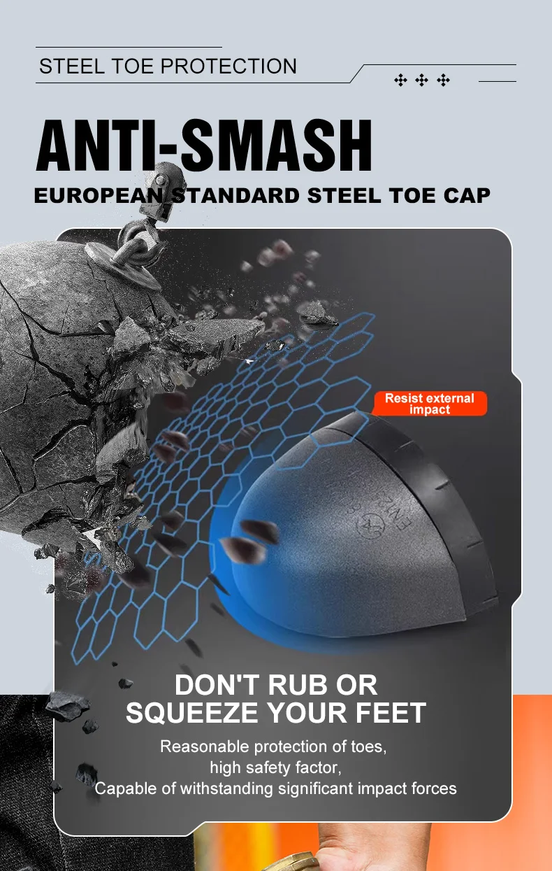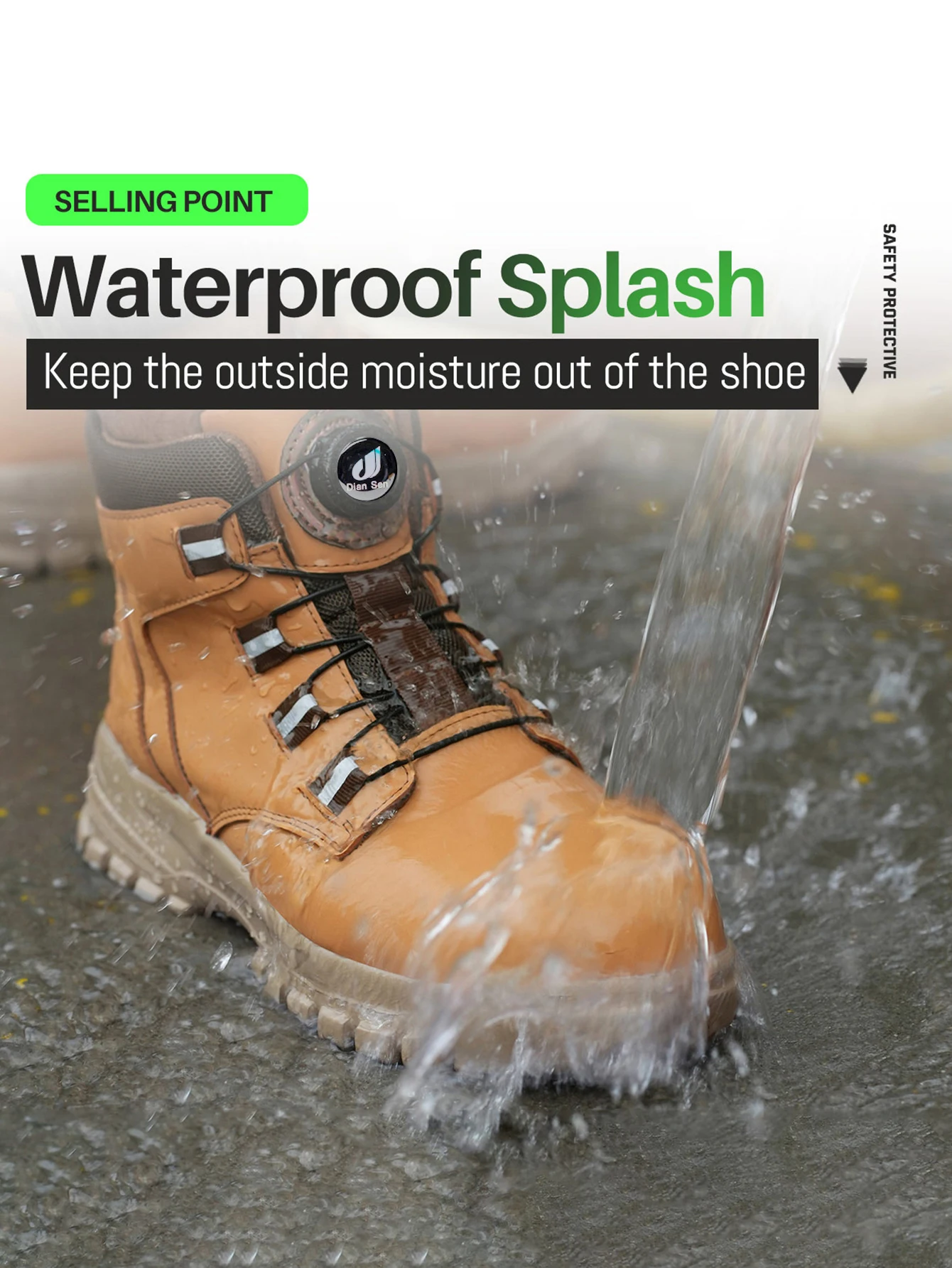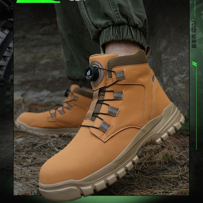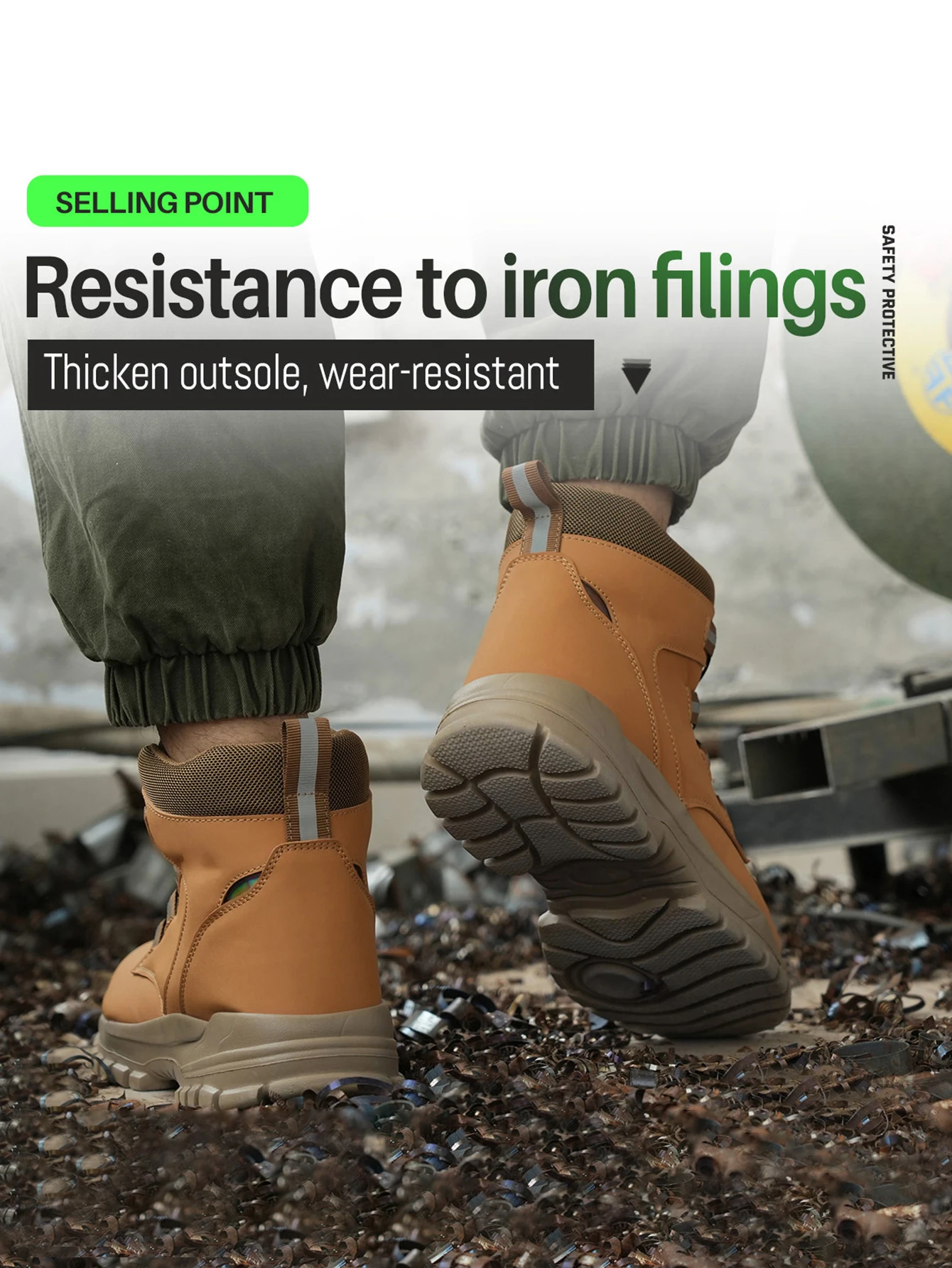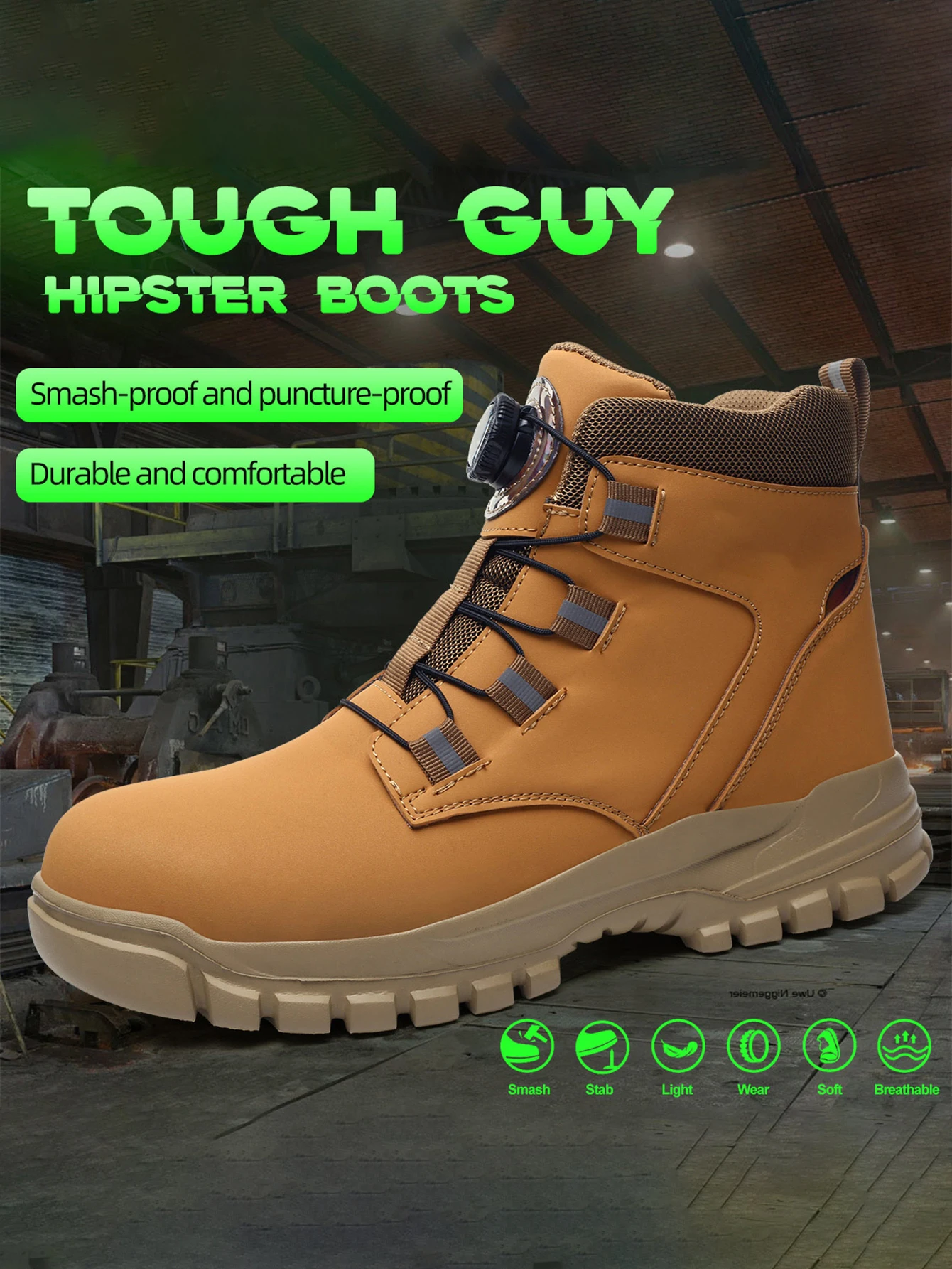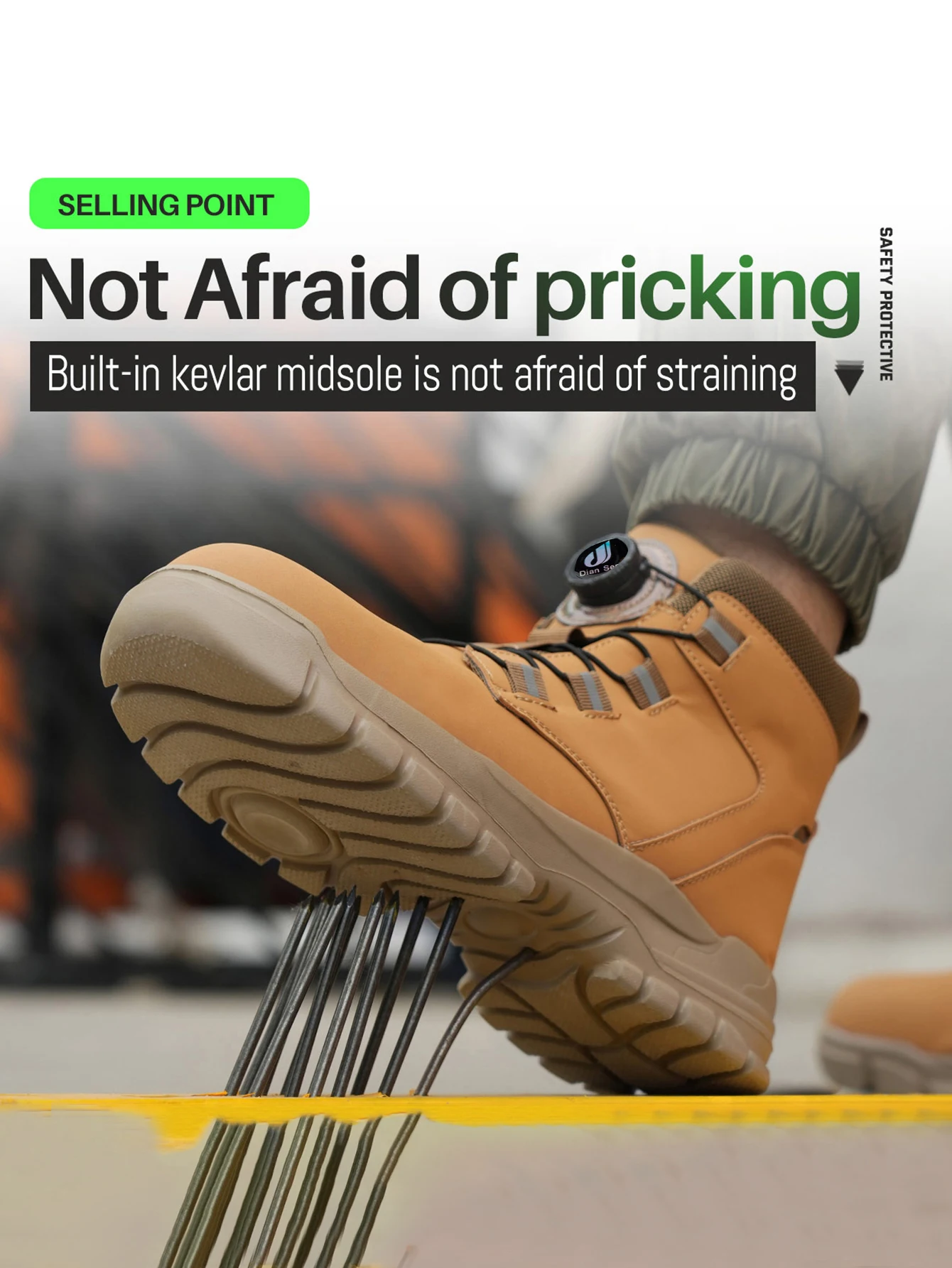 Leather Non Slip Work Boots for Men Rotating Button Safety Shoes Steel Toe Sneaker Male Puncture Proof Protective Boots