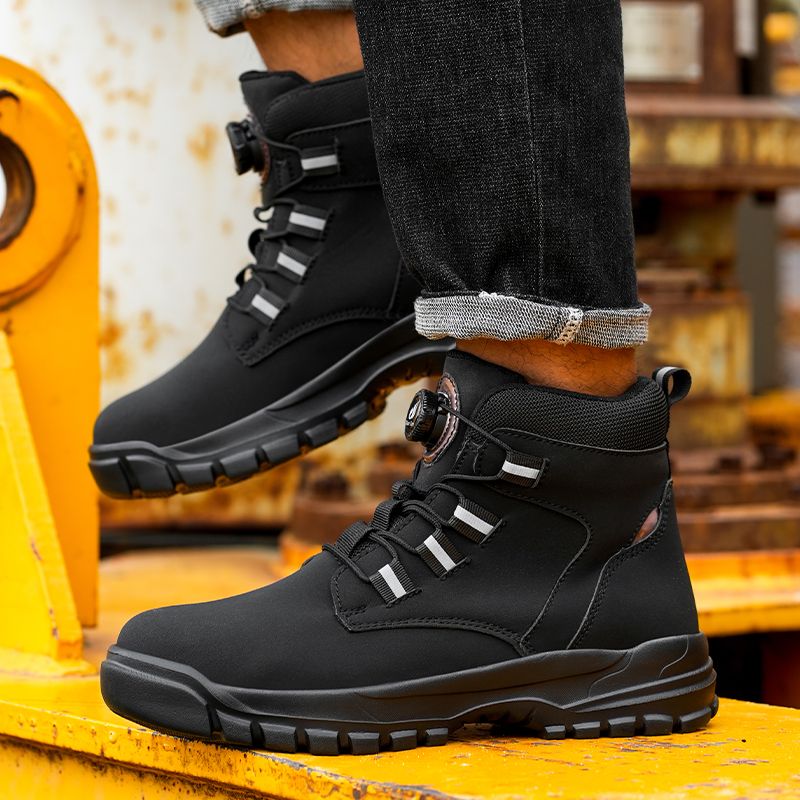 Leather Non Slip Work Boots for Men Rotating Button Safety Shoes Steel Toe Sneaker Male Puncture Proof Protective Boots