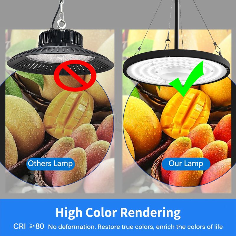 【High Brightness】White Light 6000K and Natural White 4000K high bay light, 120 ° beam angle, it can provide enough brightness at night, No strobe light failure low.