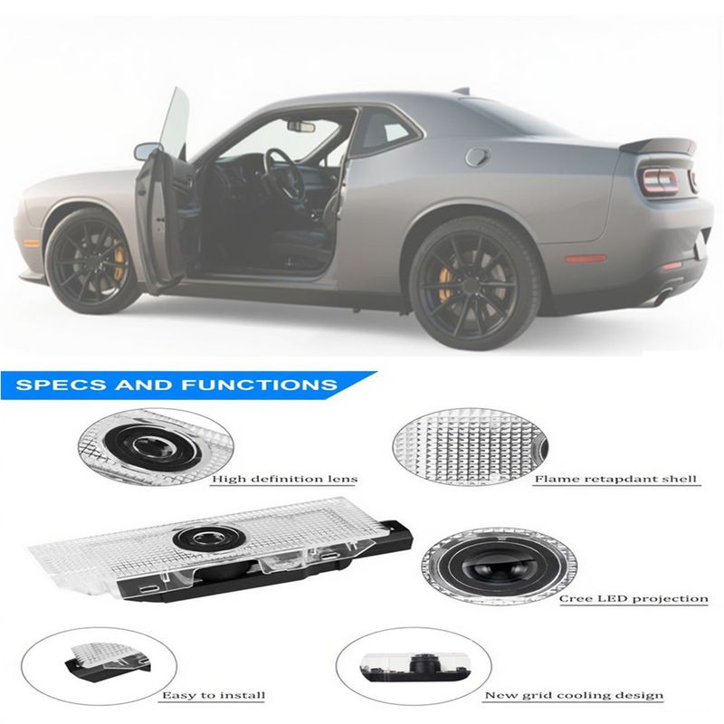 LED Auto projection Accessories Suitable For Dodge Challenger 2008-2019 Scat Pack SRT Demon 2013-2019 car door welcome light 2X
