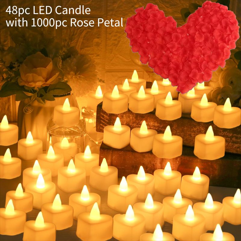 LED Candles Lights Rose Petals Set Creative Wishing Tea Lamp Warm White For Romantic Special Night Proposal Anniversary Wedding
