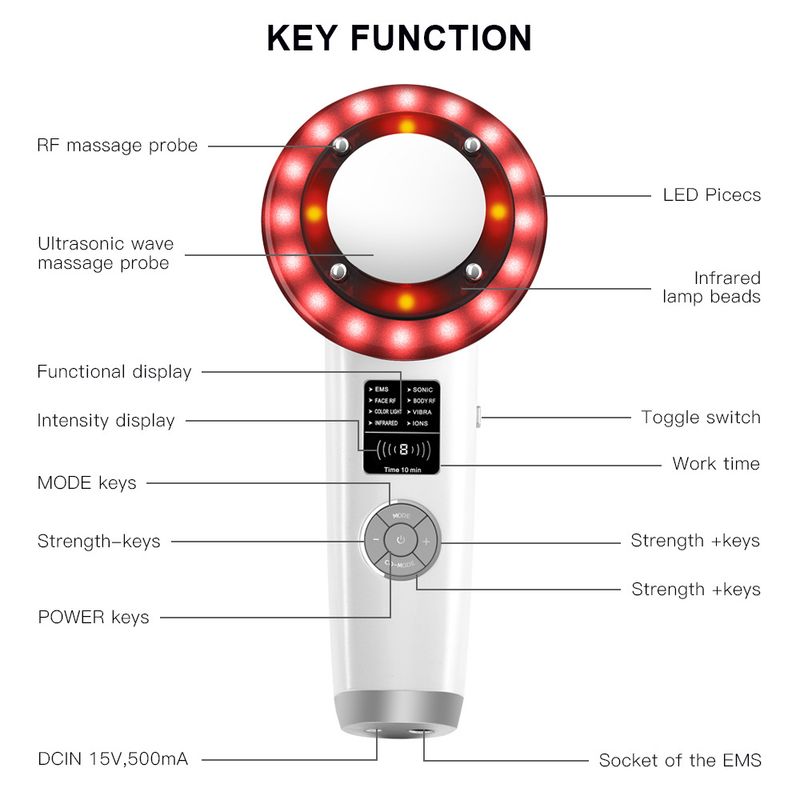Function: negative ion, infrared ray, ultrasonic wave, color light, positive ion