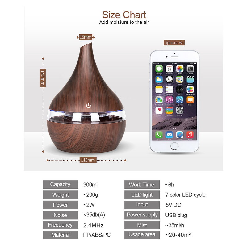 This diffuser adopts ultrasonic technology that provides whisper smooth mist and pleasant aromas to create calm, relaxing environment, soften and moisten dry and chaped skin and helps you breathe better in winter.