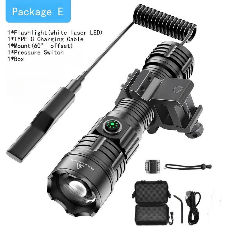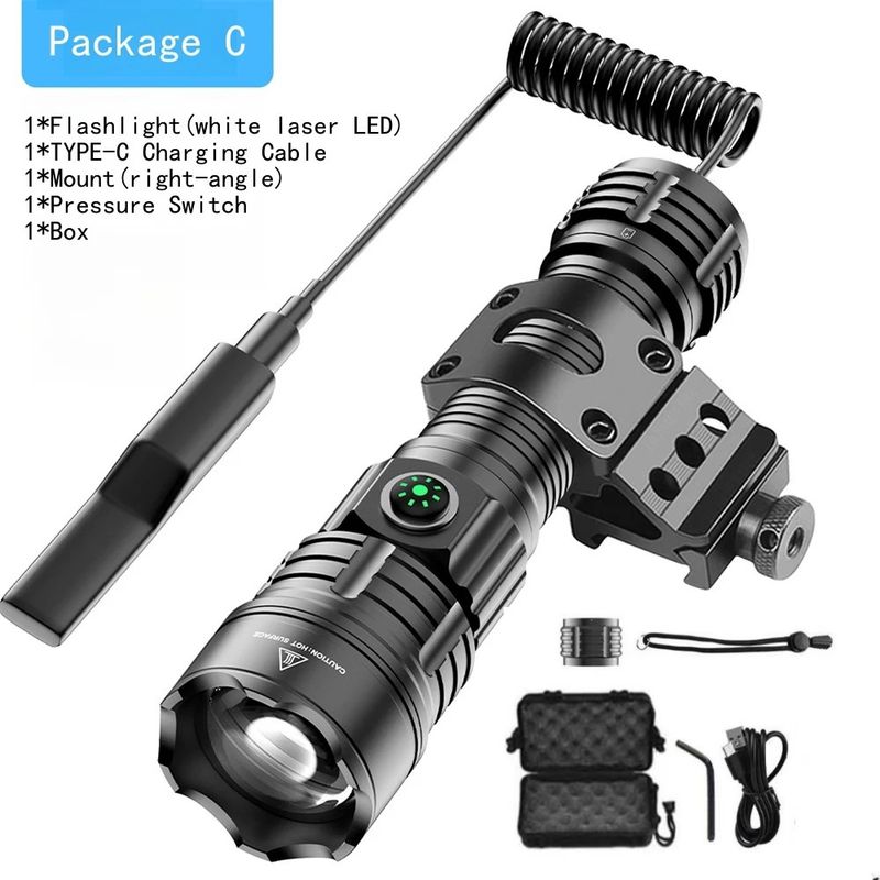 LED Flashlight Tactical Night Scout Hunting Lights Set Long-Shot Powerful Type-C Rechargeable Outdoor Waterproof Torch
