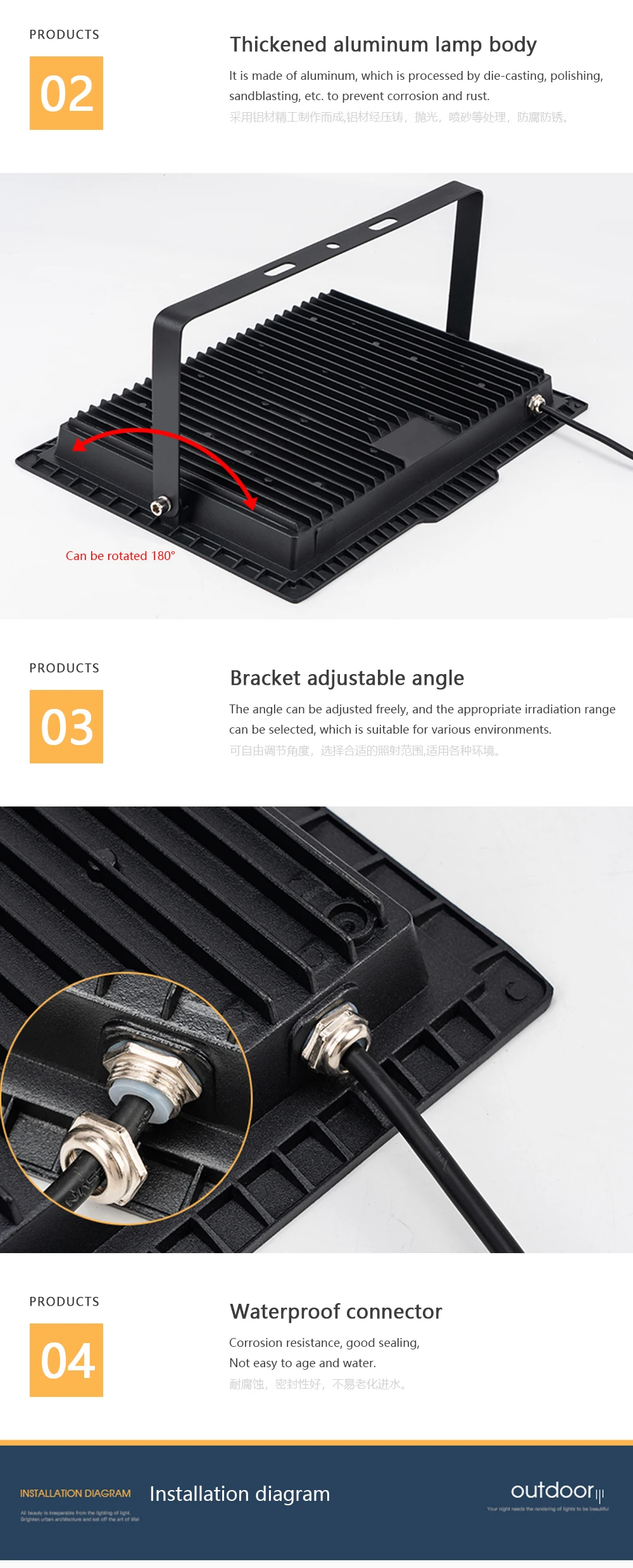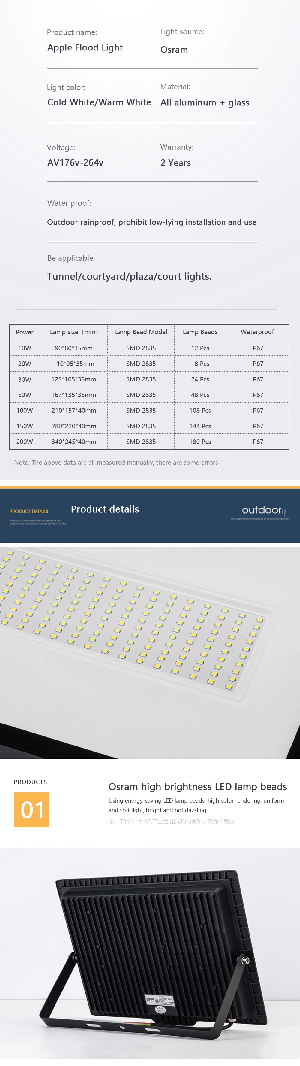 LED Flood Light 10W 20W 30W 50W 100W 150W 200W LED Spotlight Outdoor IP67 Waterproof LED Projector Garden Square Street Light