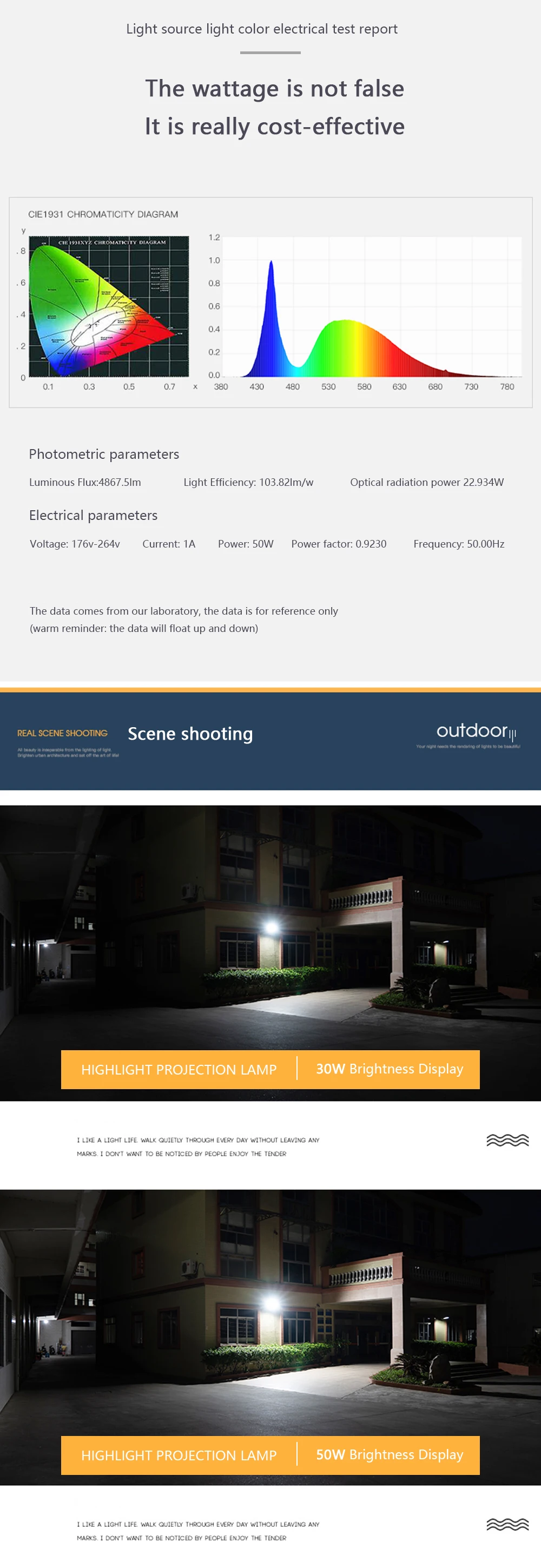 Lumens:10W(900LM) / 20W(1800LM )/ 30W(2700LM) / 50W(4500LM) / 100W(9000LM)/150W(13500LM)/200W(18000LM)
