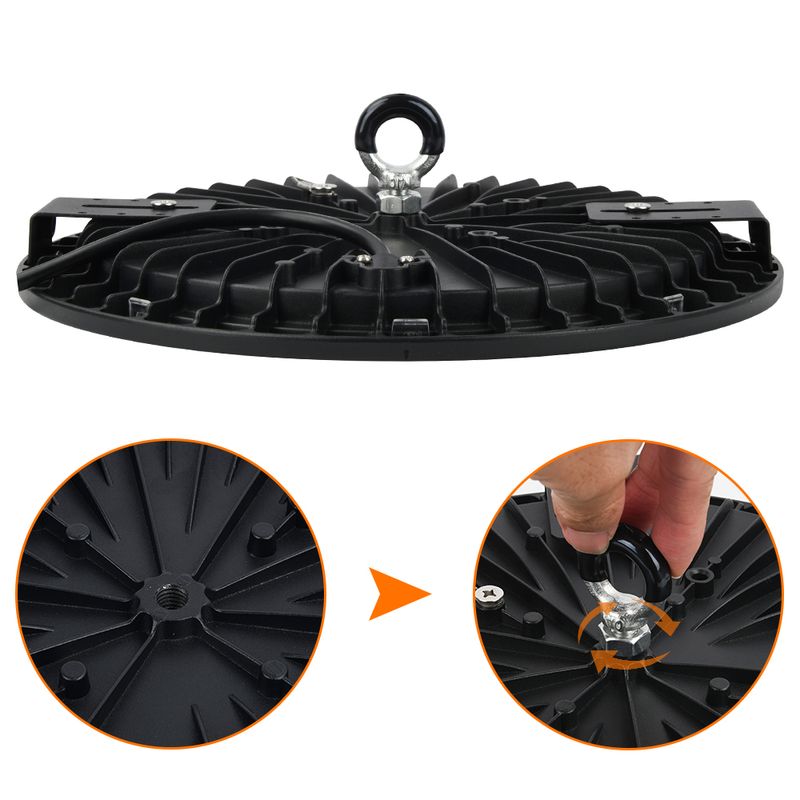 Specifications:Newest Ultra Slim UFO LED High Bay LightInput Voltage:AC 110V-265V Color Temperture:Cool White 6000K-6500KLED Form:2835 SMD LEDSLumens (LM):110-120 lm/WShell Material:Die-cast Aluminum+Beam Angle:120°Protection Grade:Waterproof IP66LED working temperature:-35°C - 55°CPRODUCT BENEFIT: Versatile outdoor lighting with a wide beam angle for illuminating large areas.