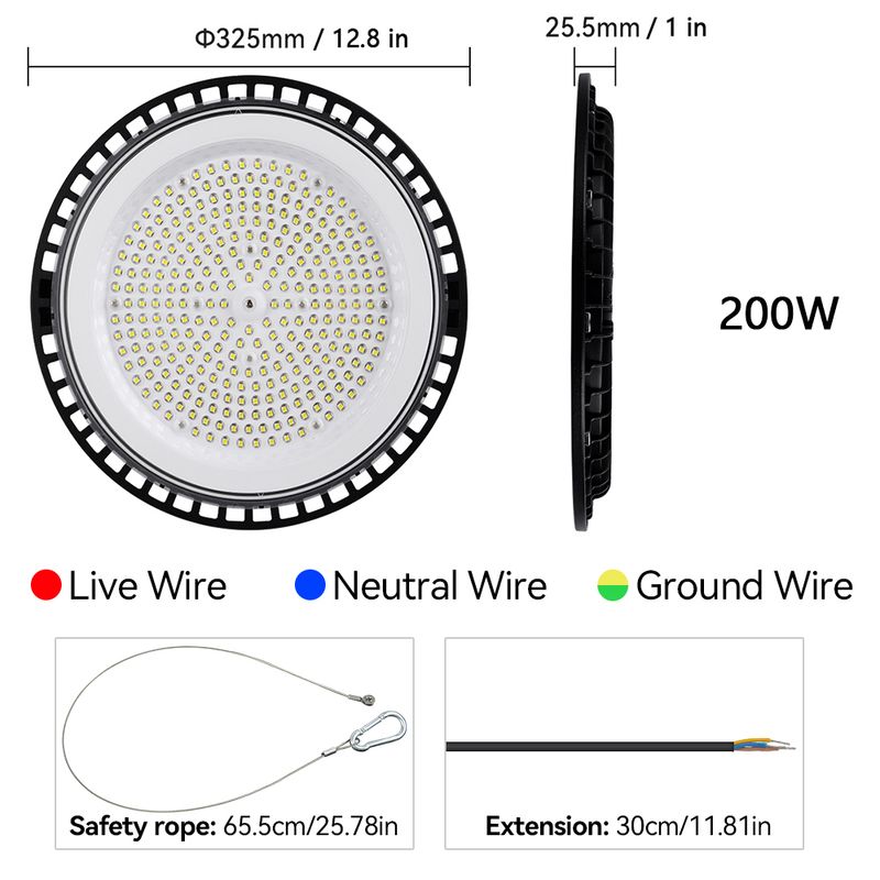 Uniform Spot: Circular UFO design, wide-angle illumination without blind spots, suitable for high ceiling environments such as warehouses and factories.