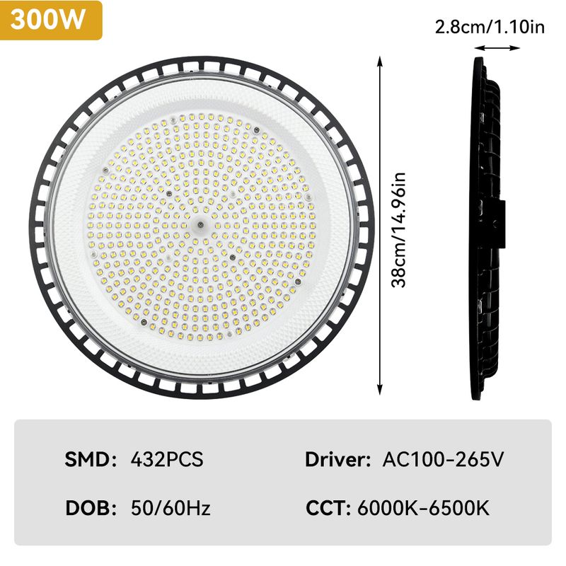 Uniform Spot: Circular UFO design, wide-angle illumination without blind spots, suitable for high ceiling environments such as warehouses and factories.