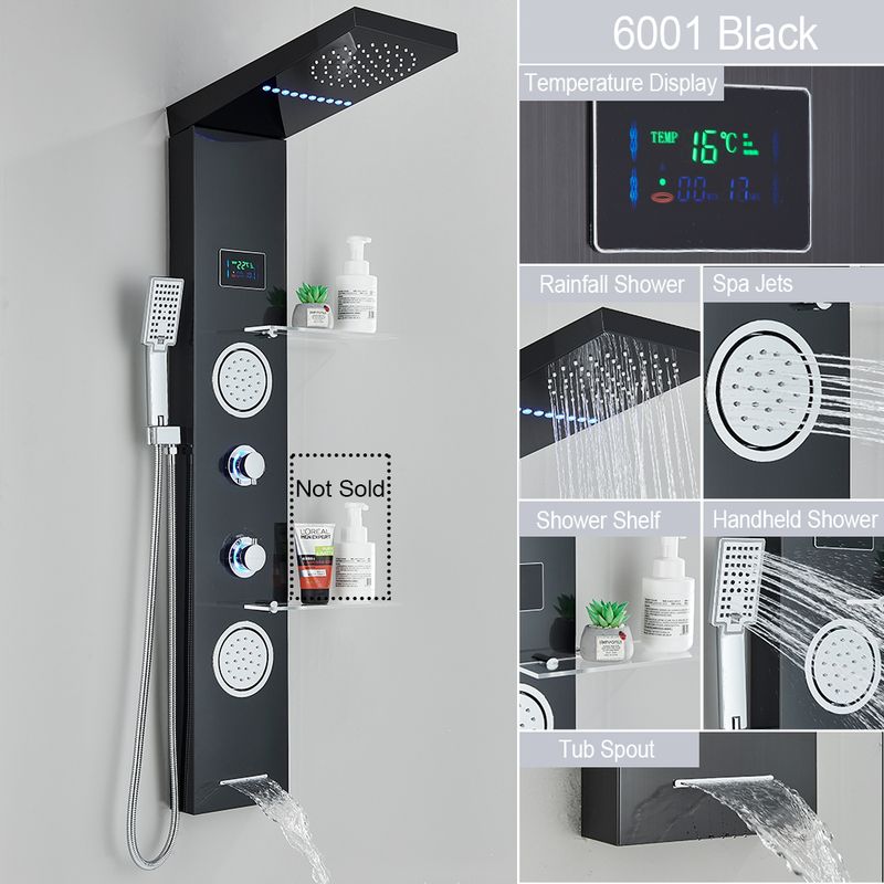 LED Light Shower Panel Waterfall Rain Digital Display Shower Faucet Set SPA Massage Jet Bathroom Column Mixer Tap Tower System