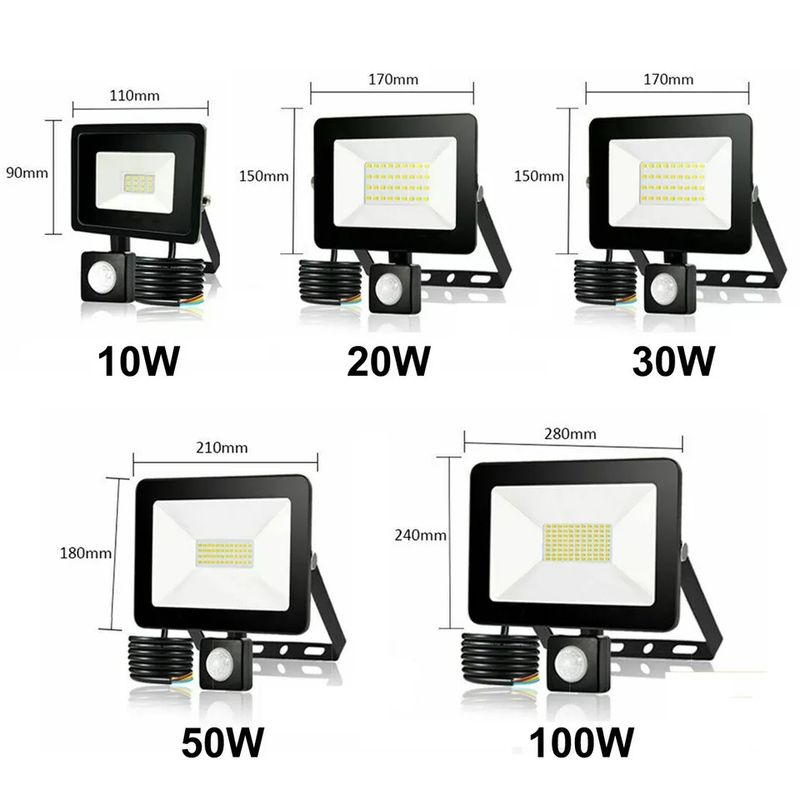 LED Motion Sensor Flood Light 10W 20W 30W 50W 100W IP66 Waterproof Auto On/Off Energy Saving for Outdoor Garden Security Lamp