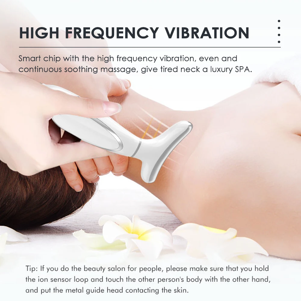 5.This neck beauty instrument adopts the design concept of bionics, adopts the shape of dolphin tail, and the Y-shaped massage head perfectly fits the curves of the jaw line, neck, shoulders and other parts, and transmits energy to every inch of skin.