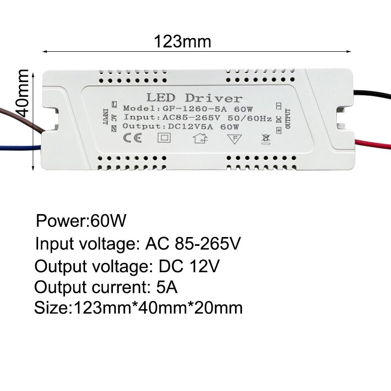 LED power supply DC 12V transformer switch driver 1A/2A/3A/5A adapter AC110V-220V 12W/24W/36W/60W for CCTV and LED strip ligh