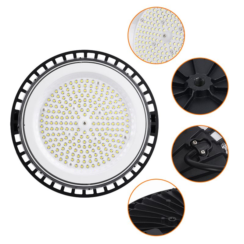 Specifications:Newest Ultra Slim UFO LED High Bay LightInput Voltage:AC 110V-265V Color Temperture:Cool White 6000K-6500KLED Form:2835 SMD LEDSLumens (LM):110-120 lm/WShell Material:Die-cast Aluminum+Beam Angle:120°Protection Grade:Waterproof IP66LED working temperature:-35°C - 55°CPRODUCT BENEFIT: Versatile outdoor lighting with a wide beam angle for illuminating large areas.