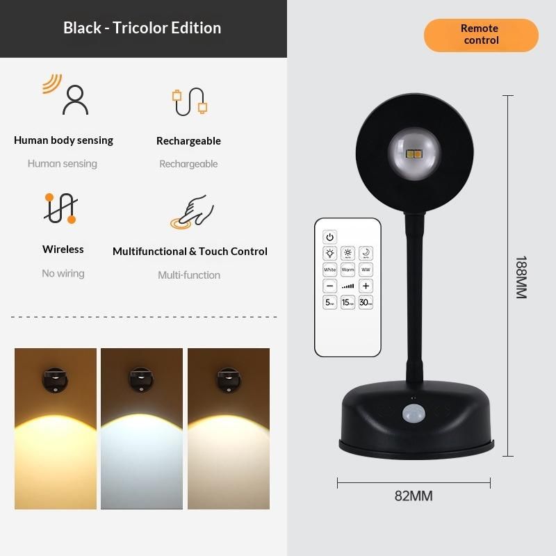 LED Spotlight for Reading Lighting Hotel Bar USB Rechargeable Wireless Wall Light with Intelligent Human Sensing Dimmable
