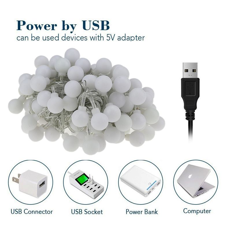 Led String Lights Usb Festoon Lights Outdoor Waterproof String Ball Lights Bedroom Christmas Lights Tree Fairy Lights Warm White