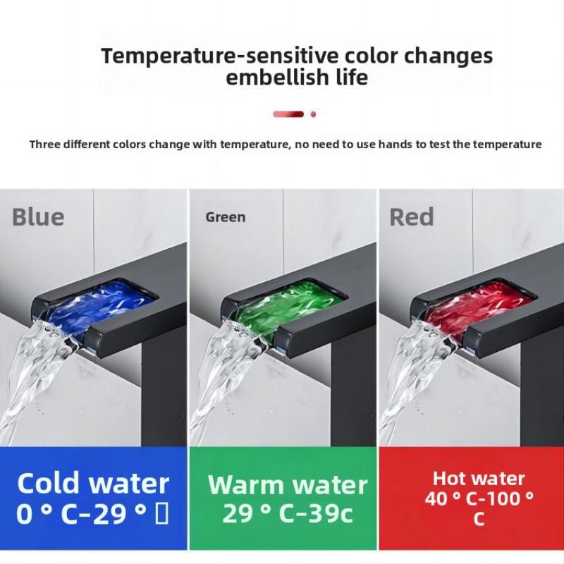 LED Waterfall Bathroom Basin Faucet Wash Sink Mixer Faucet White Black Chrome Sink Faucet Single Handle Toilet Mixer Tap
