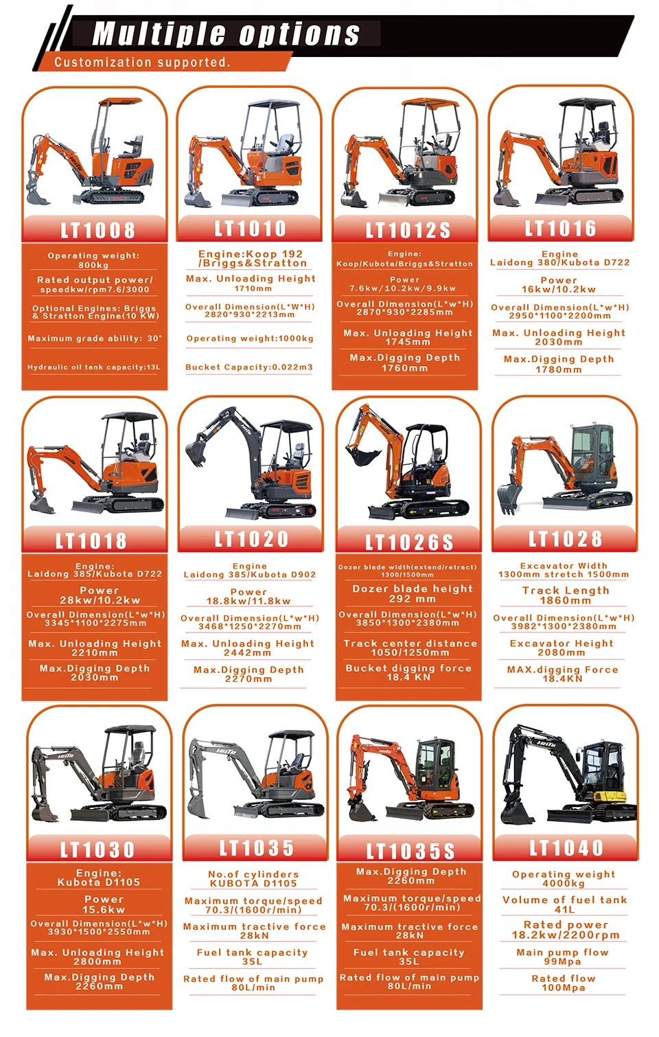 The mini excavators produced by our factory can meet the private custom service and tailor-made for you, and can provide OEM and ODM services🤝