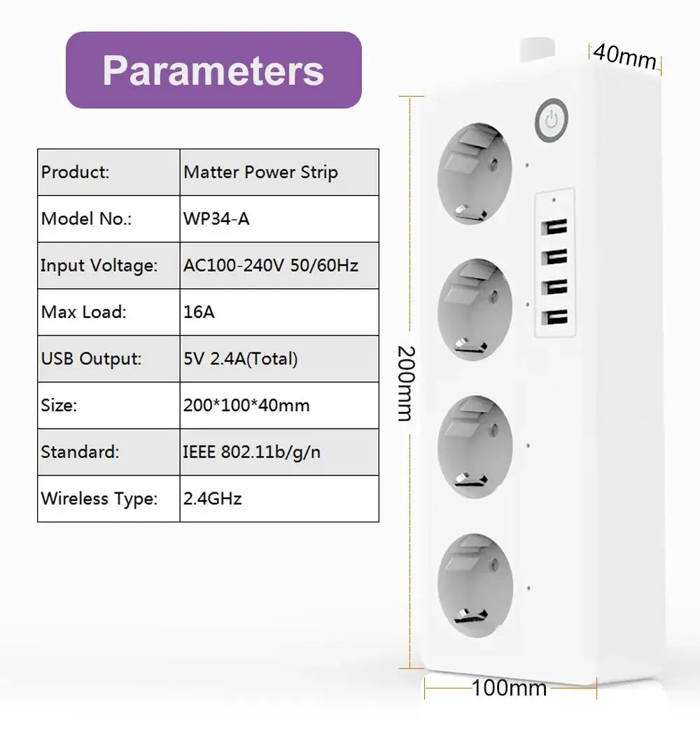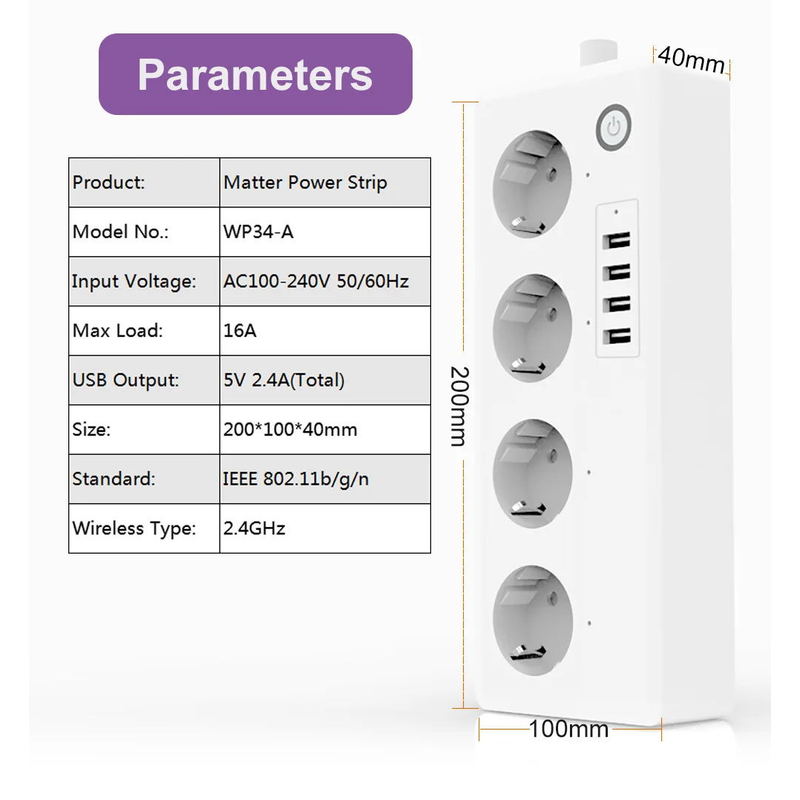 1. The power strip supports Matter protocol, It stable 2.4GHz WiFi network, Not support 5GHz and Thread.
