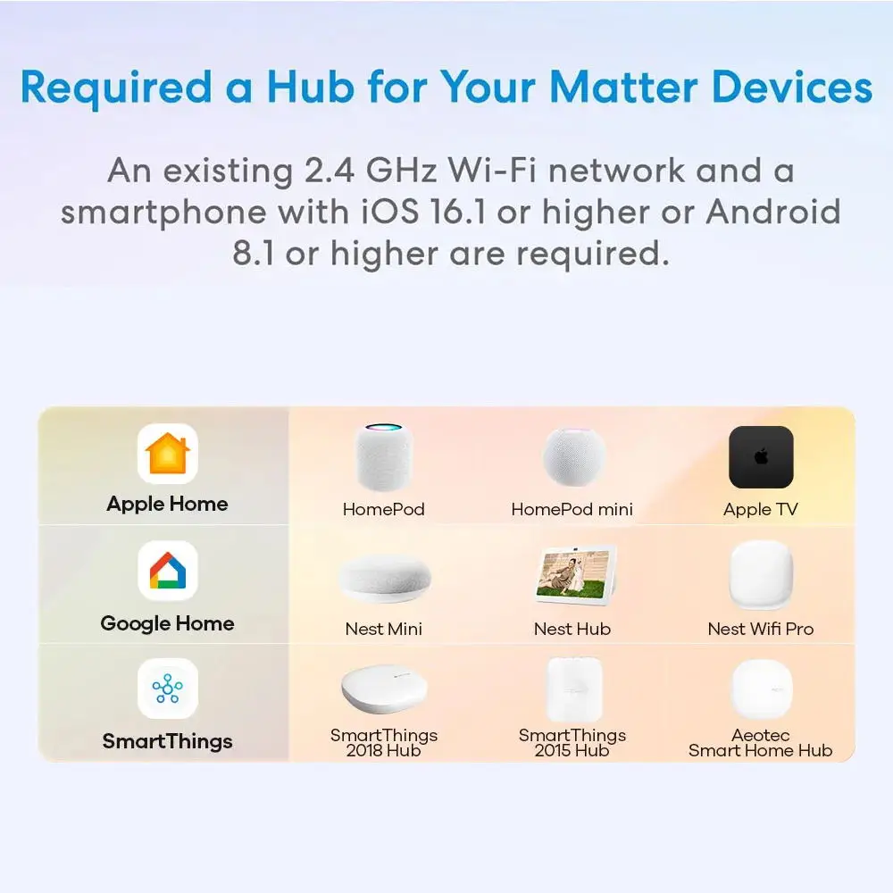 2. To using it, you'll need a Matter-certified hub or controller such as: Apple Home, Google Home or SmartThings. With their apps, you can directly configure the power strip on these platforms.
