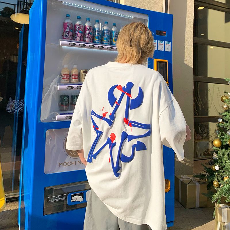 Leman Jinjun Short Sleeve Men'S Fashion Korean Fashion Foam Technology Top Hip Hop Loose Bf Split Half Sleeve T-Shirt Black M