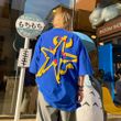 Leman Jinjun Short Sleeve Men'S Fashion Korean Fashion Foam Technology Top Hip Hop Loose Bf Split Half Sleeve T-Shirt Blue 2XL