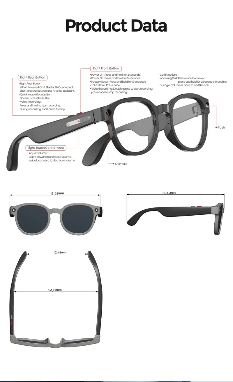 Hands-free calling & music playback: Answer calls and stream music directly from the glasses