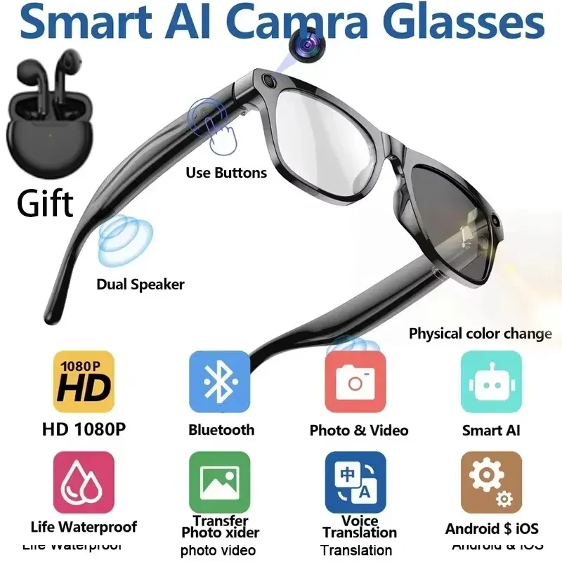 Main Features: AI voice assistant/photo taking/video recording/audio recording/music control/calling/alert sounds/indicator lights/translation/object recognition/touchscreen/music playback (music control, local music) etc.