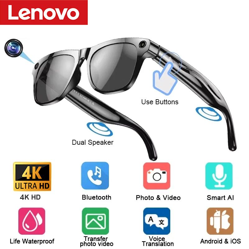 Lenovo 4K HD AI Camera Glasses 800MP Photochromic Multifunctional Calling Photo Video ChatGPT Music Translation Smart Glasses