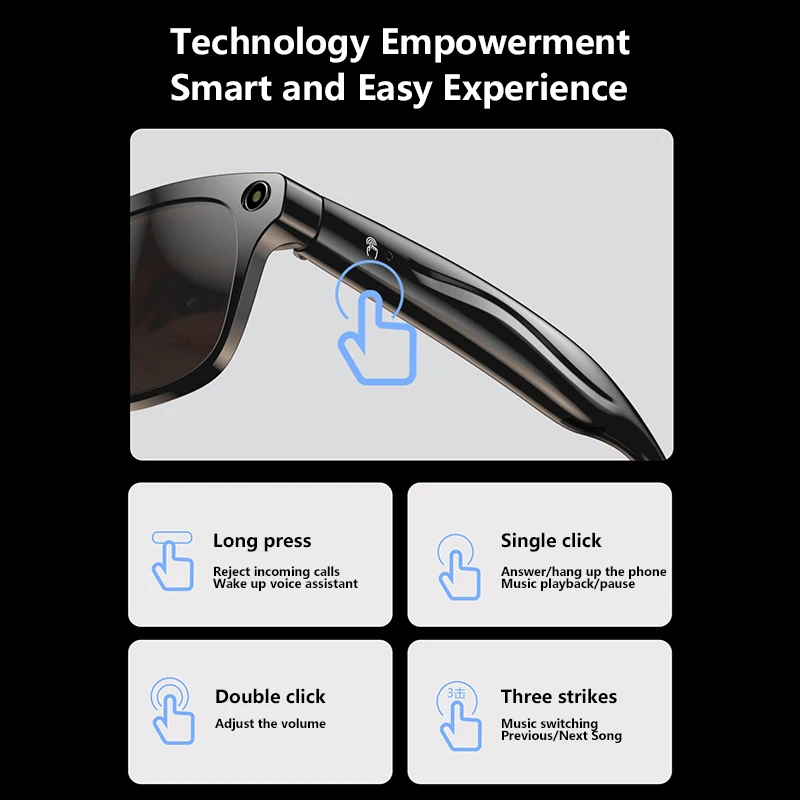 Main Features: AI voice assistant/photo taking/video recording/audio recording/music control/calling/alert sounds/indicator lights/translation/object recognition/touchscreen/music playback (music control, local music) etc.