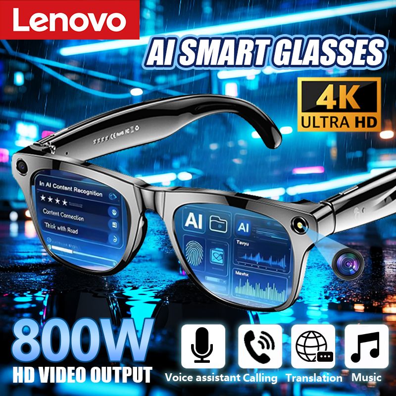 Lenovo 4K HD AI Camera Glasses 800MP Photochromic Multifunctional Calling Photo Video ChatGPT Music Translation Smart Glasses