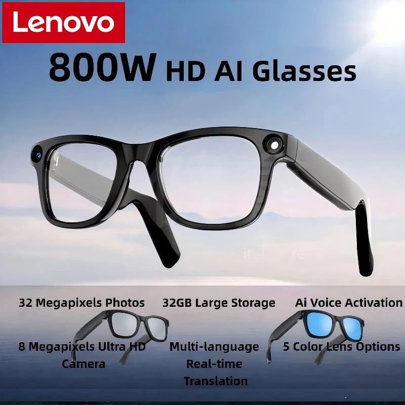 Lenovo 800W Pixel Intelligent Glasses G300 AI HD Shooting Video Recording Voice Call Translation Glasses Photochromic Lens 2026