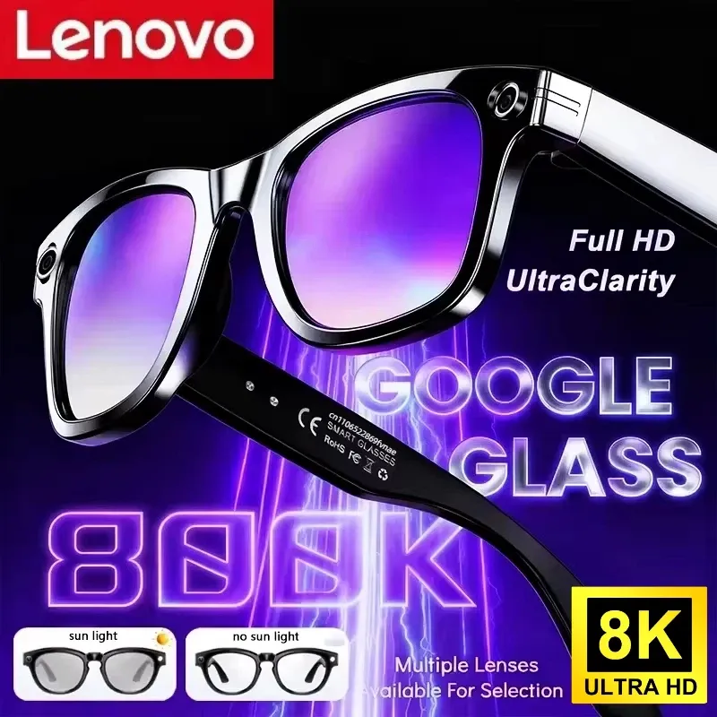 Lenovo 8K AI HD Shooting Smart Glasses Multifunctional Camera Bluetooth Call Music VoicePlayer Translate Photochromic HD Glasses