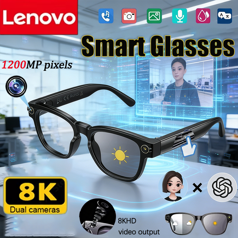 Lenovo 8K AI Smart Glasses 1200mp HD Camera Chat Gpt Touch Sport Smart Sunglasses Music Player Voice Assistant Bluetooth Calling