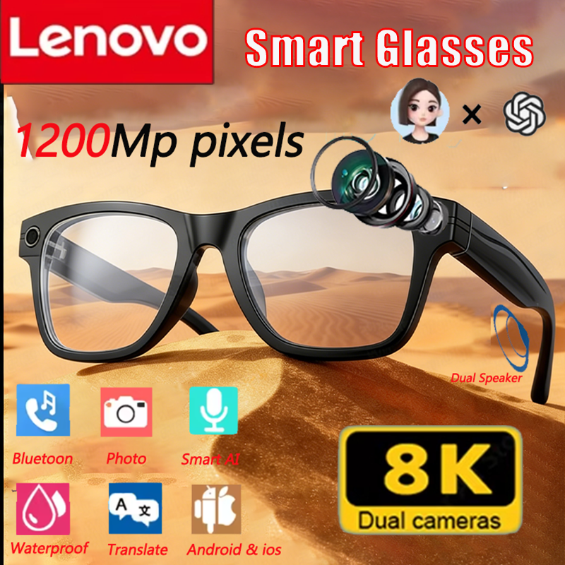 Lenovo 8K Smart Glasses With 1200mp Camera Chat Gpt Touch Sport AI Sunglasses Music Player Bluetooth Calling For Women Men Gift
