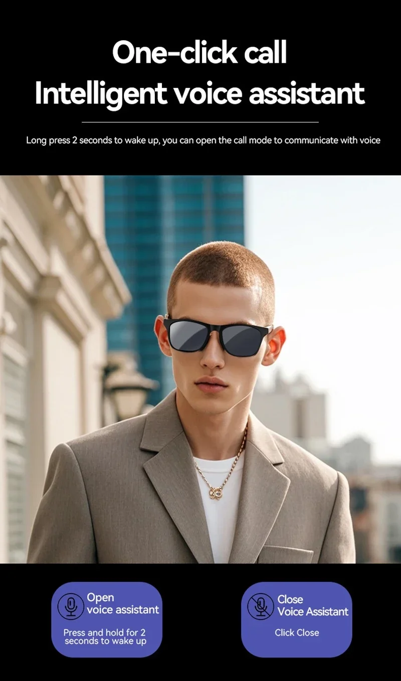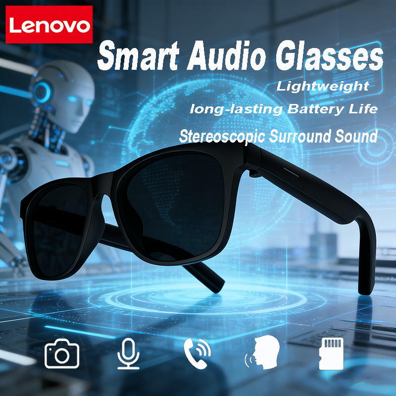 Lenovo AI Smart Glasses Remote Control Touch Photography Voice Assistant Wireless Bluetooth Call Headphone For Men Women Gifts