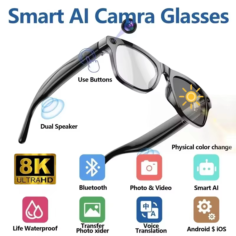Capture every detail with the 8K Smart Glasses' 1200MP HD camera, ensuring high-resolution photos and videos.