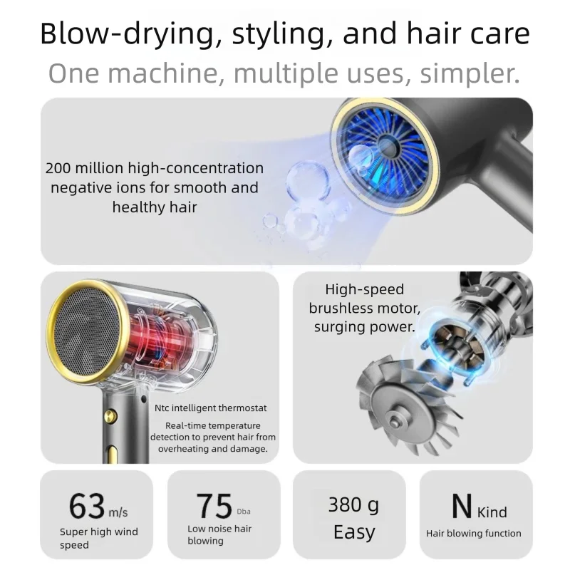 Release 200 million negative ions, neutralize static electricity, and enhance hair shine.