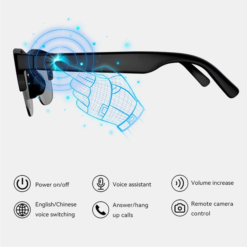 D12 Smart Glasses Voice Assistant with Photo & Remote Control AI Translation Bluetooth Glasses with HD Stereo Sound