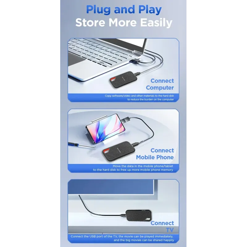 Lenovo E61 Original 128TB Portable SSD USB 3.1 High-Speed 256TB External Hard Drive for Laptop/Desktop/Phone Flash Memory Disk