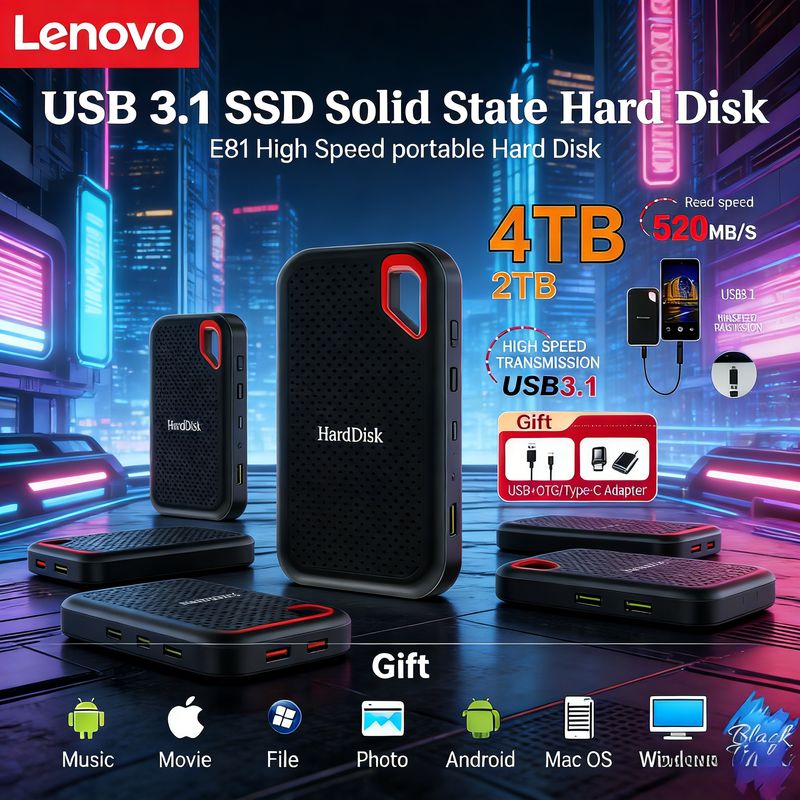 Large capacity Portable SSD E61 1TB USB 3.1 Type-C High-Speed Storage 2TB Original Solid State Drive suitable for Phone/PC/Mac