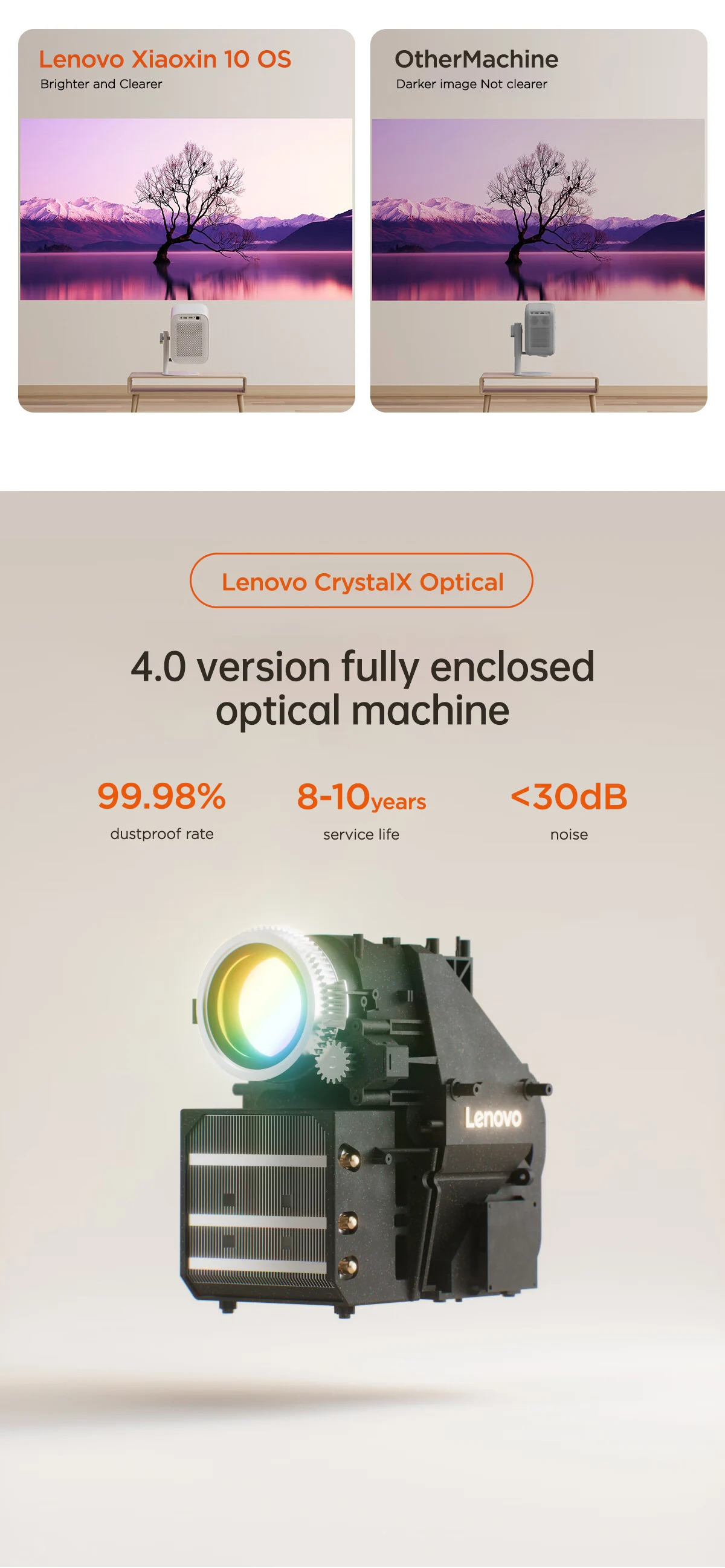 The fourth generation fully enclosed optical machine effectively prevents 99% of dust from entering the interior of the machine, resulting in a longer service life